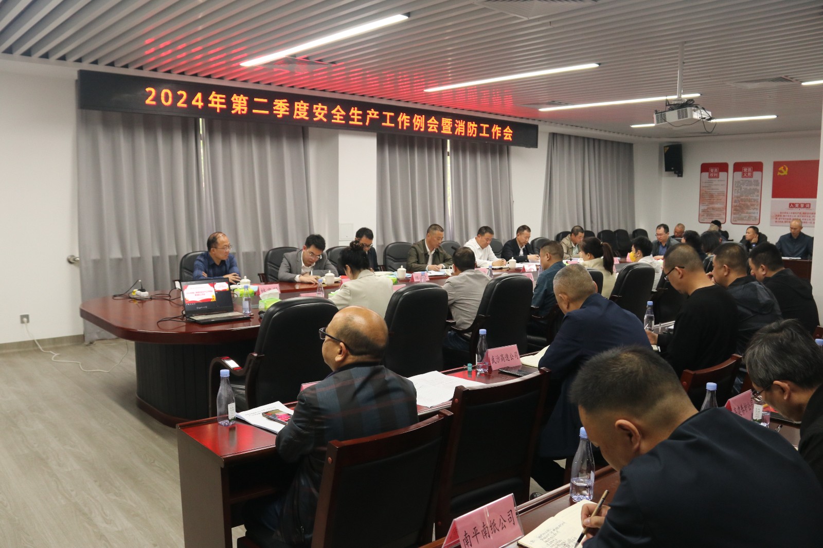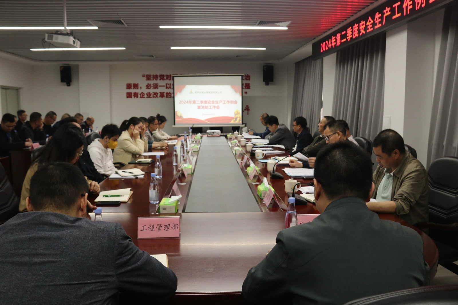 4月9日,南平武夷发展集团召开2024年第二季度安全生产工作例会暨消防工作会议。集团领导江训强、张捷、练必钦、李育昕、周隆武,集团安全总监黄文义、集团总经理助理林忠贤及集团机关各部门负责人、安委会成员和二级成员公司主要领导共计60余人参加会议。会议由集团党委委员、总工程师李育昕主持。