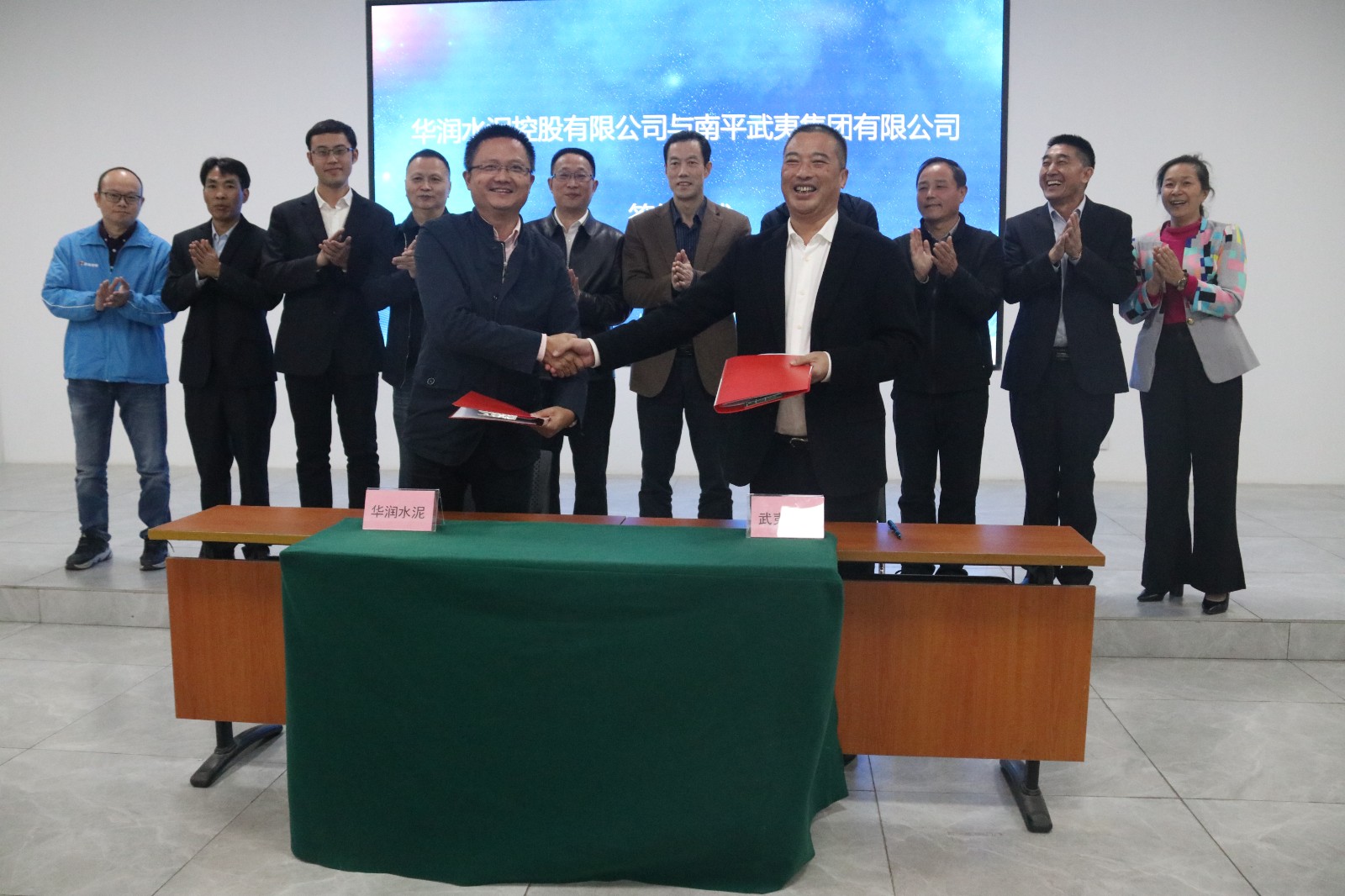 南平武夷集团党委委员、副总经理,南平武夷矿产资源发展有限公司总经理童家康,南平武夷矿产资源发展有限公司常务副总经理游振金,南平武夷矿产资源发展有限公司副总经理何志勇,华润水泥控股有限公司副总裁何友栋,华润水泥控股有限公司东南大区市场部总监余来兴,华润水泥控股有限公司东南大区战略发展总监吴行才,华润水泥控股有限公司东南大区财务部副总监兰波,华润水泥控股有限公司东南大区战略执行经理魏昌林,华润水泥控股有限公司东南大区市场部销售经理林阳付参加签约。