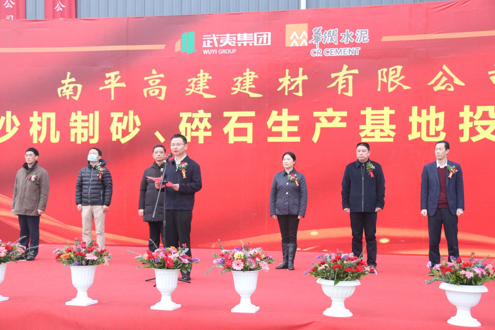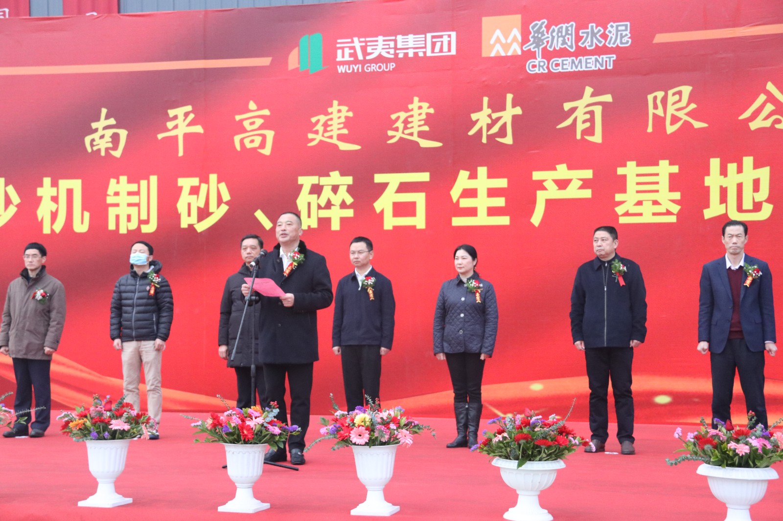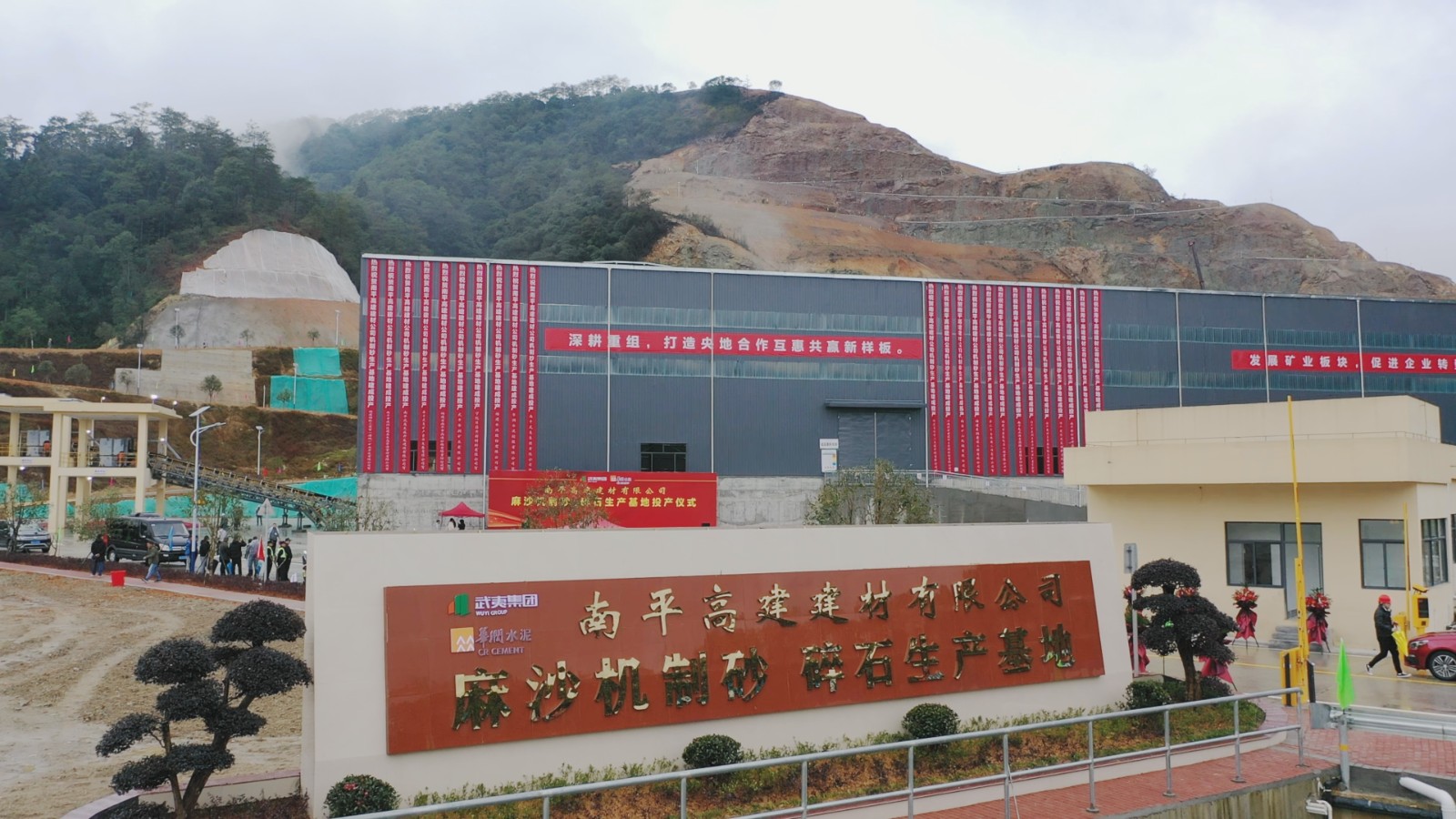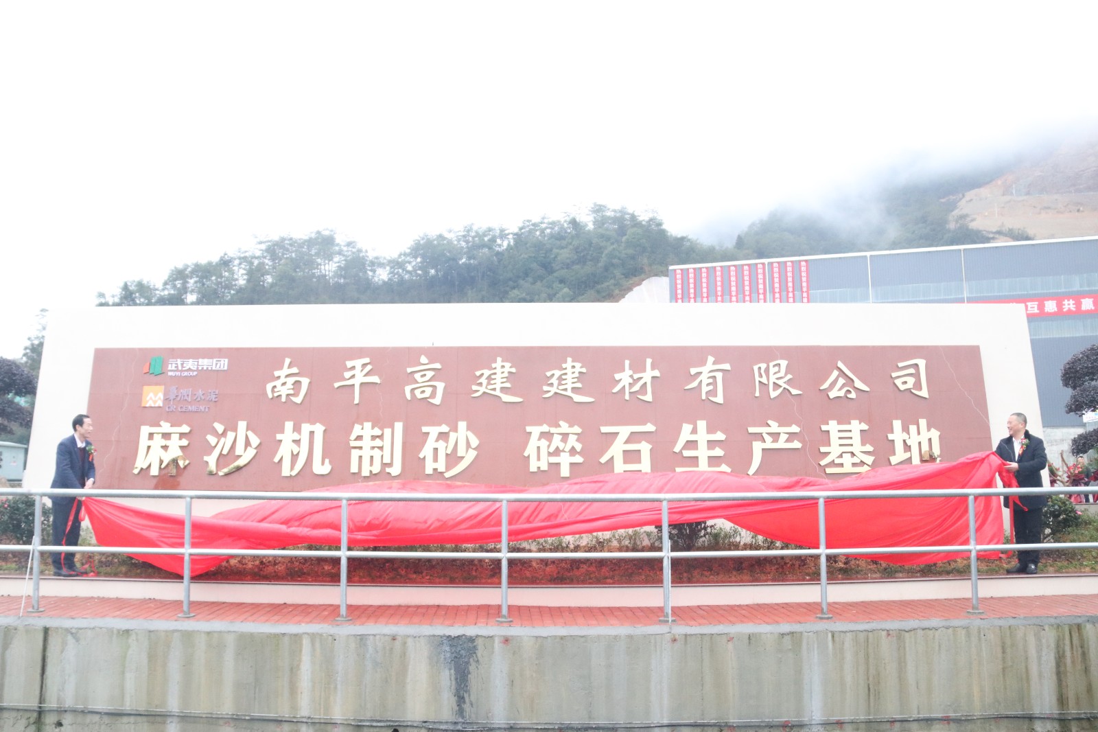 1月18日,省重点项目,武夷集团与华润水泥共同合作开采经营的建阳区麻沙机制砂项目举行投产(试运行)仪式,市国资委、市发改委、市自然资源局、市住建局、市应急管理局、市林业局、市工信局、市商务局、市生态环境局、建阳区等相关单位领导及南平武夷集团、华润水泥控股有限公司负责同志参加投产仪式。武夷集团党委书记、董事长,南平武夷矿产资源发展有限公司董事长江训强与华润水泥控股有限公司副总裁何友栋共同为南平高建建材有限公司麻沙机制砂碎石生产基地揭牌。