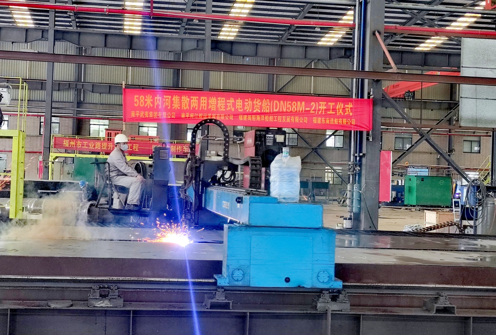 当日,南平武夷集团有限公司党委书记、董事长江训强,党委委员、副总经理王永华,南平闽江航运发展有限公司总经理贾春永等同志通过视频的方式,见证两艘58米内河集散两用货船的开工仪式。