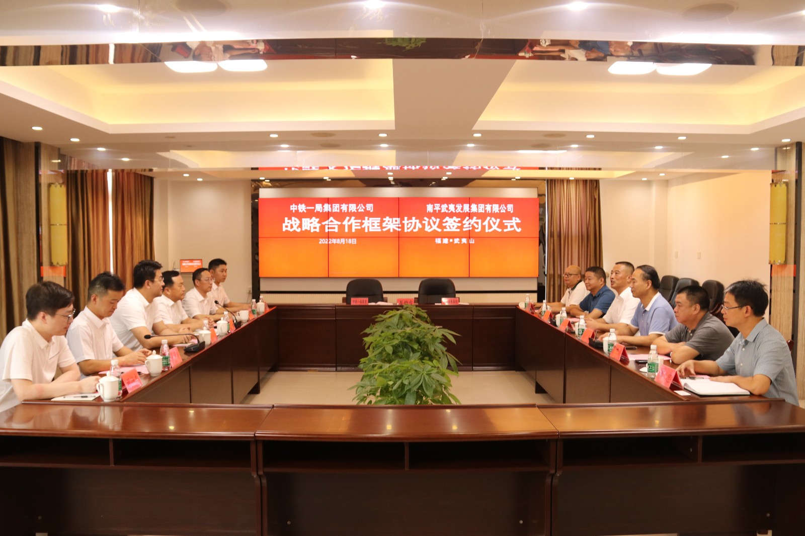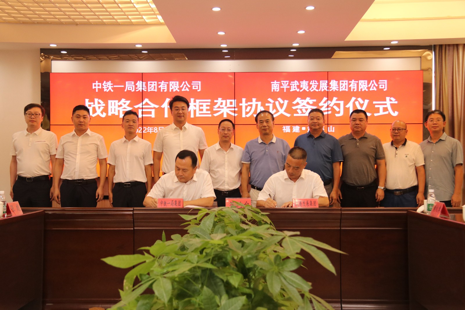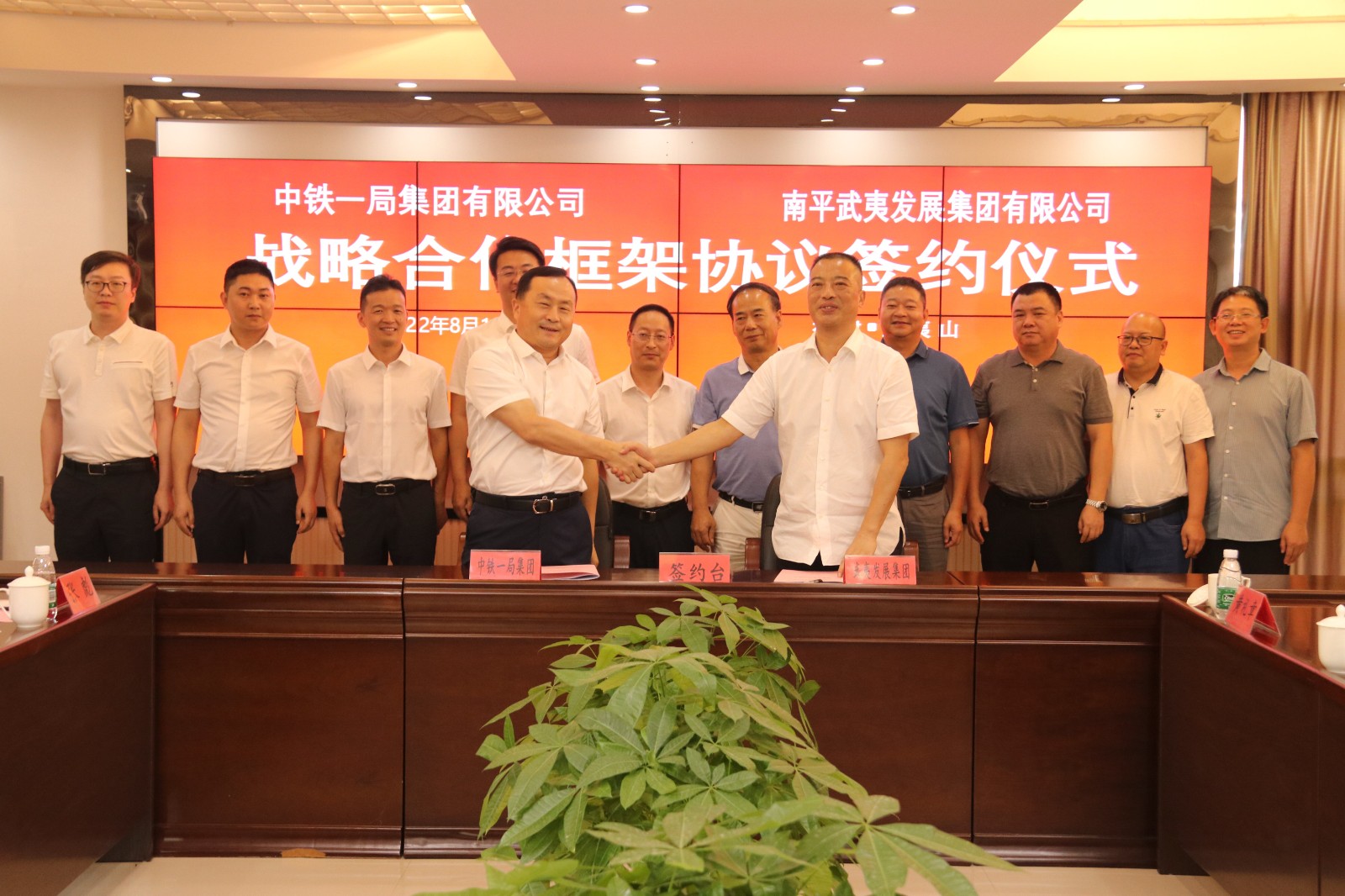 在参会人员的见证下,南平武夷发展集团党委书记、董事长江训强与中铁一局集团党委常委、副董事长郭秀春签署战略合作协议。