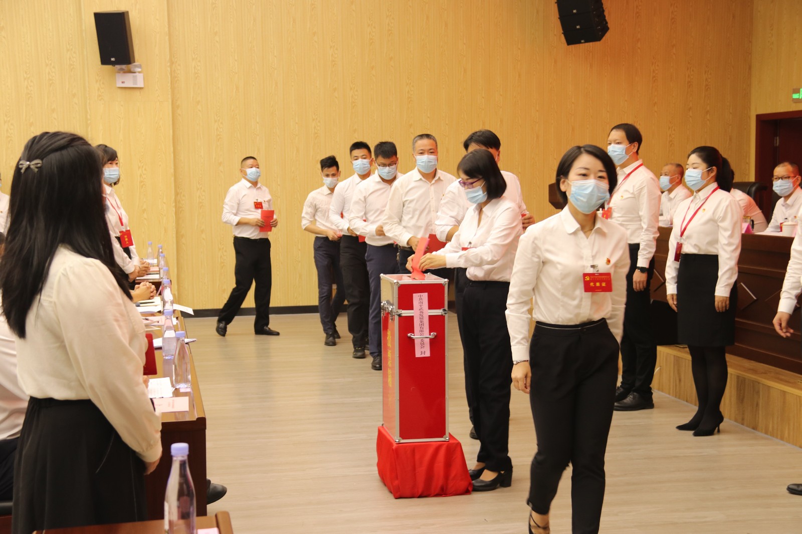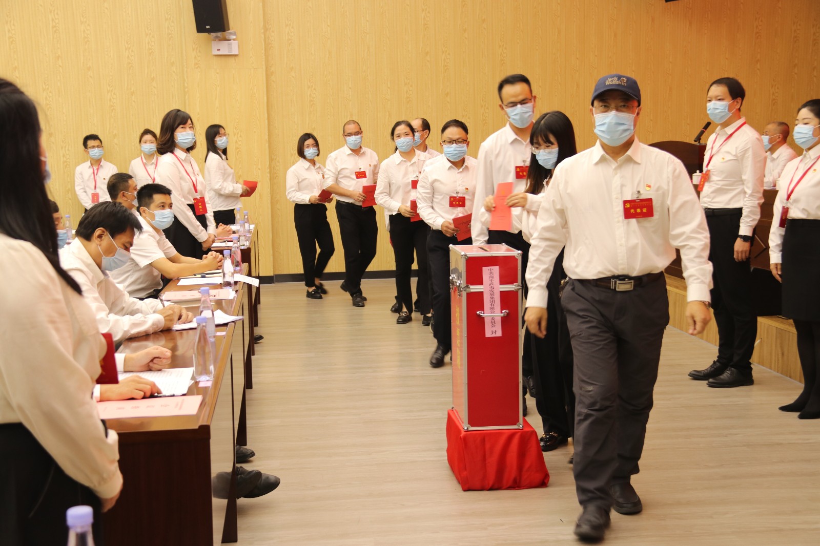 随后,大会进行了分组讨论,各代表团组织审议党委和纪检工作报告。大会通过了党委、纪检工作报告,参会代表通过无记名投票方式并选举产生了中国共产党鼎博app第一届委员会9名委员和第一届纪律检查委员会7名委员。