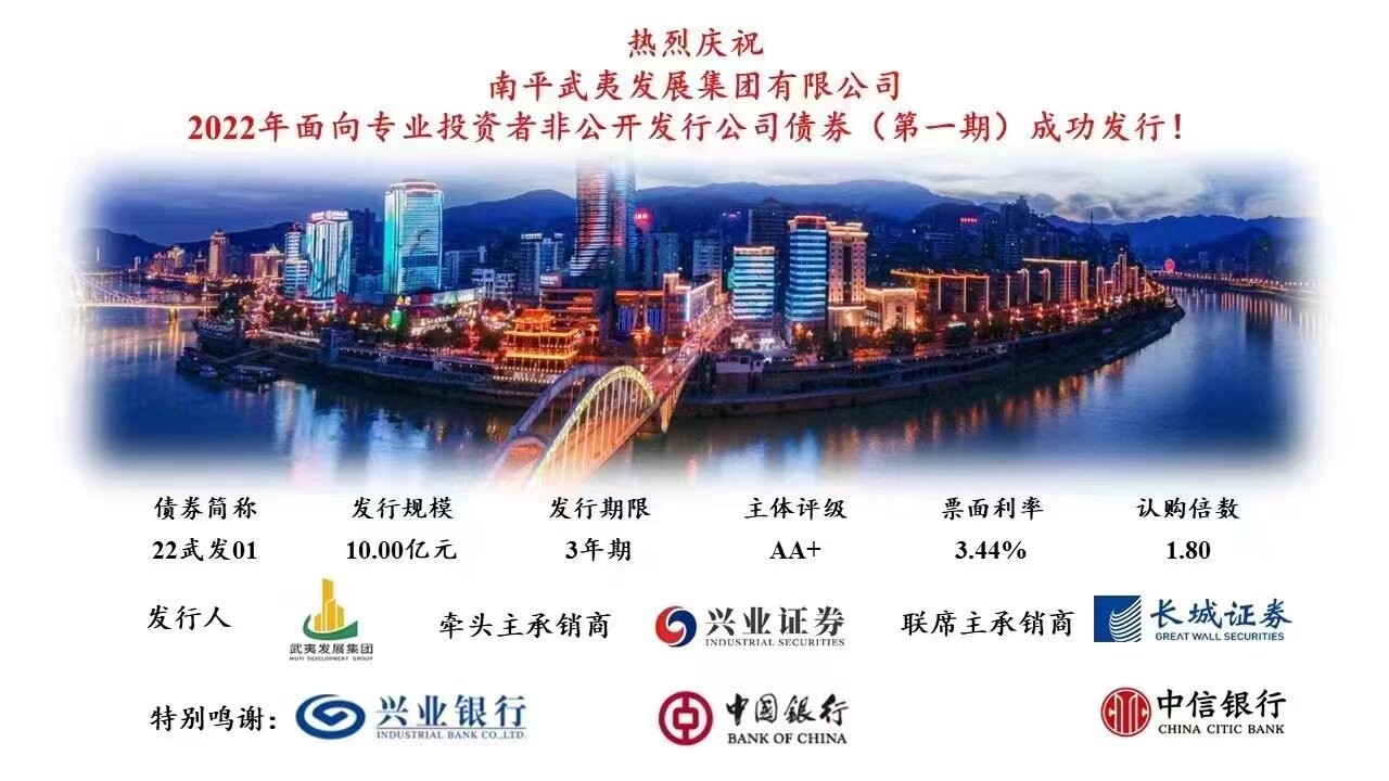 本期债券作为武夷发展集团组建以来在国内资本市场首秀,市场反应积极活跃,特别是获得兴业银行、中国银行、中信银行等多家金融机构的申购,充分体现了资本市场对武夷发展集团的认可,同时也进一步拓宽了融资渠道,降低了融资成本,提升了集团在资本市场的良好形象,为集团后续融资奠定了良好基础,为持续稳步发展提供了中长期资金保障。