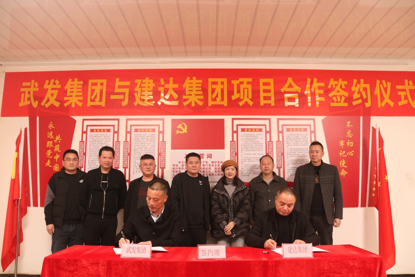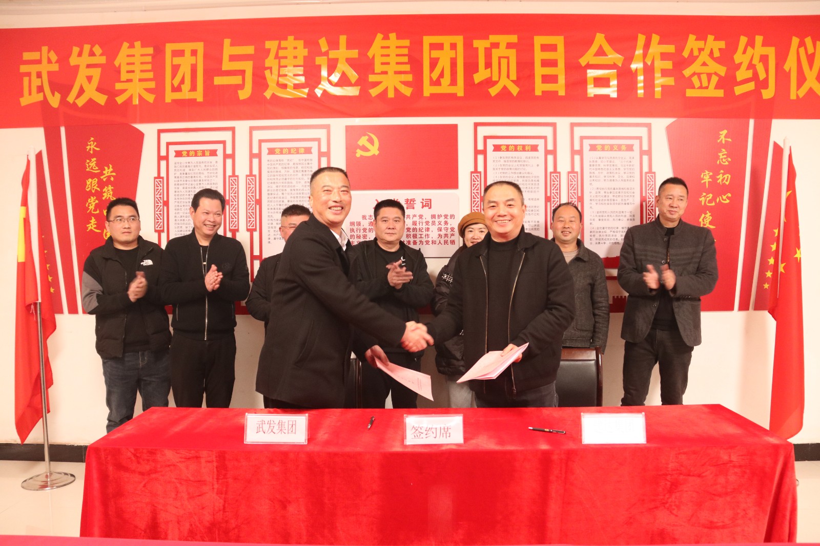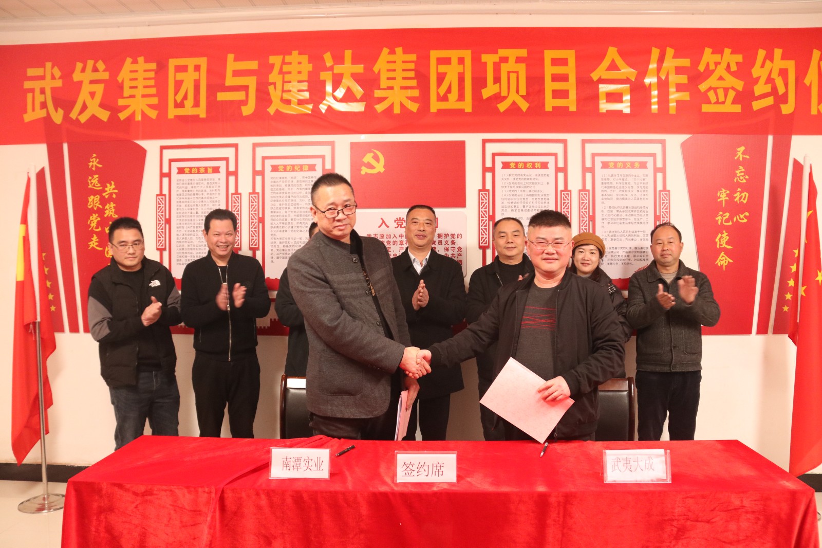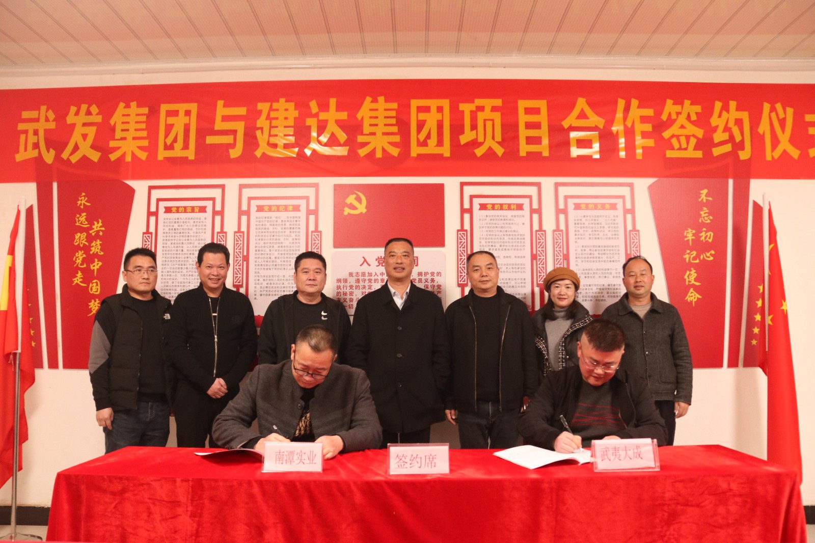 南平武夷发展集团党委书记、董事长江训强与建阳区建达集团党委书记、董事长邓奋聪签署《战略合作框架协议》;武夷大成公司董事长朱中全与建达南潭公司董事长纪相发签署《混凝土加工委托协议》,根据协议,双方将在水泥混凝土生产加工方面展开深度合作。