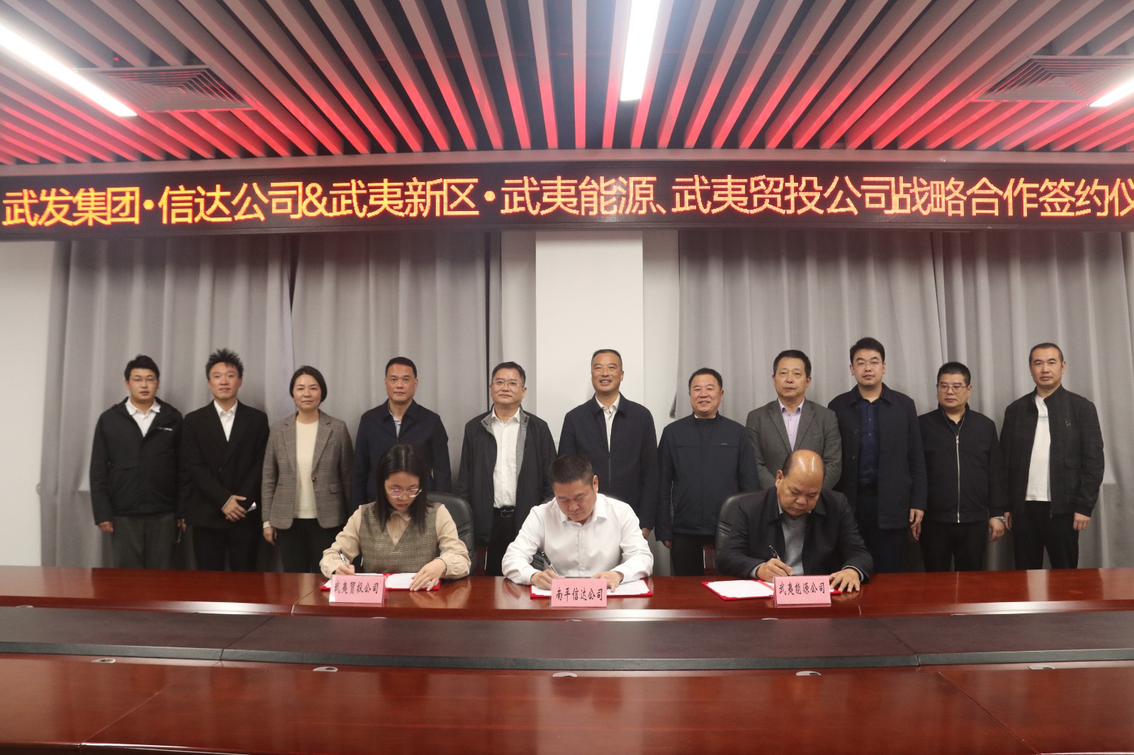 11月14日,集团所属南平信达供应链有限公司与南平武夷高新能源供应有限公司、南平市武夷新区贸易投资有限公司签署战略合作协议。武夷新区管委会领导郭冠中、王晓,武夷发展集团领导江训强、张捷、周隆武、金国平及武夷高新技术产业控股集团、武夷新区城市发展集团、信达供应链公司相关负责人参加签约。