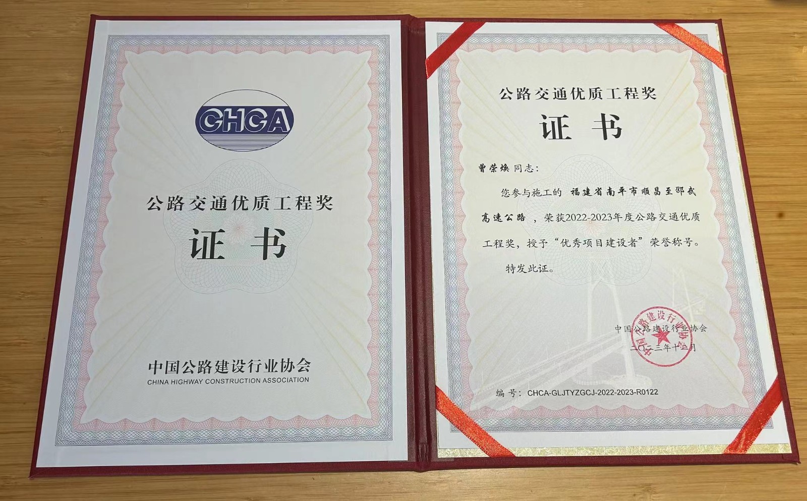 此外,南平高速建设公司曾荣焕、刘胜友、肖源亮三位工程师被授予“优秀项目建设者”荣誉称号,曾荣焕同志代表公司及优秀建设者团队到现场领奖。曾荣焕同志从业四十年来,一直兢兢业业、任劳任怨,以勤勉的作风、无私的精神贡献着自己的光和热。虽已年近花甲,但他始终坚守共产党员的忠诚和执着,四十年如一日,初心不改,长期奋战在项目一线,他负责的重点建设项目多次获得嘉奖与表彰。