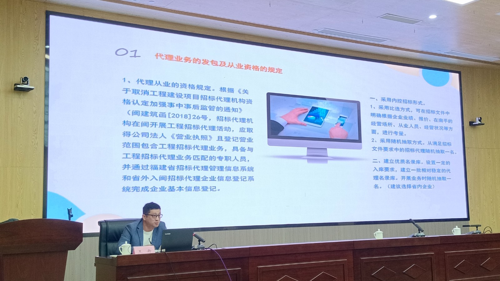 本次培训邀请了武夷学院土木工程系教授、博士王玉林,南平市住建局建筑业科副科长、高级工程师王舟,福建林业职业技术学院交通工程系副教授、高级工程师、监理工程师颜转娣三位老师分别就“新技术,新工艺,新材料,新设备”在工程建设中的研究和推广、建设工程发承包及招投标规范流程和相关法律法规、机电工程安装质量控制要点结合实际案例进行经验交流暨授课。
