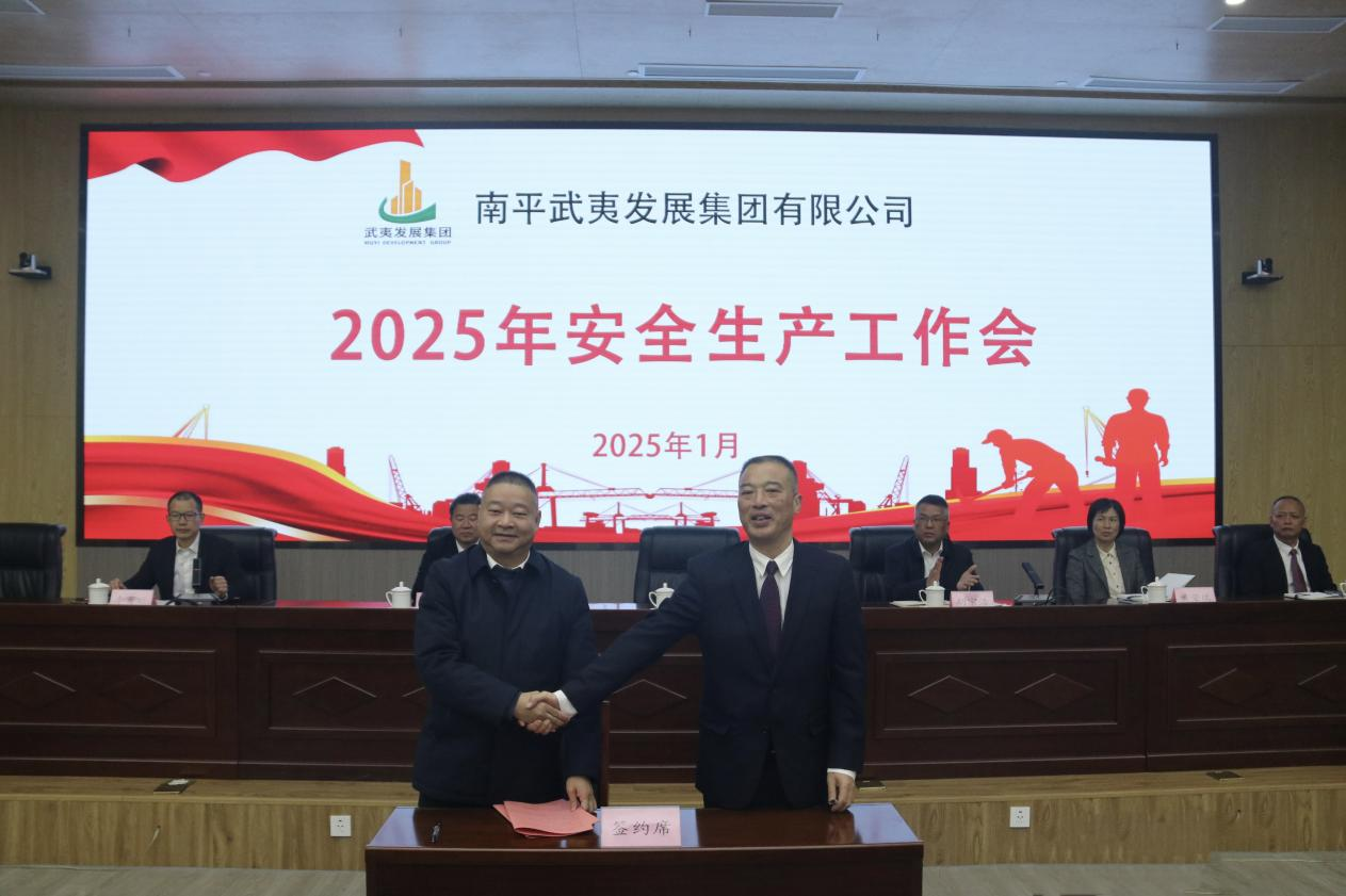 会上,江训强与各板块公司代表签订了2025年《安全生产目标责任书》和《消防安全责任书》。集团安全总监黄文义总结了2024年安全生产和消防安全工作,并对2025年重点工作进行全面部署。