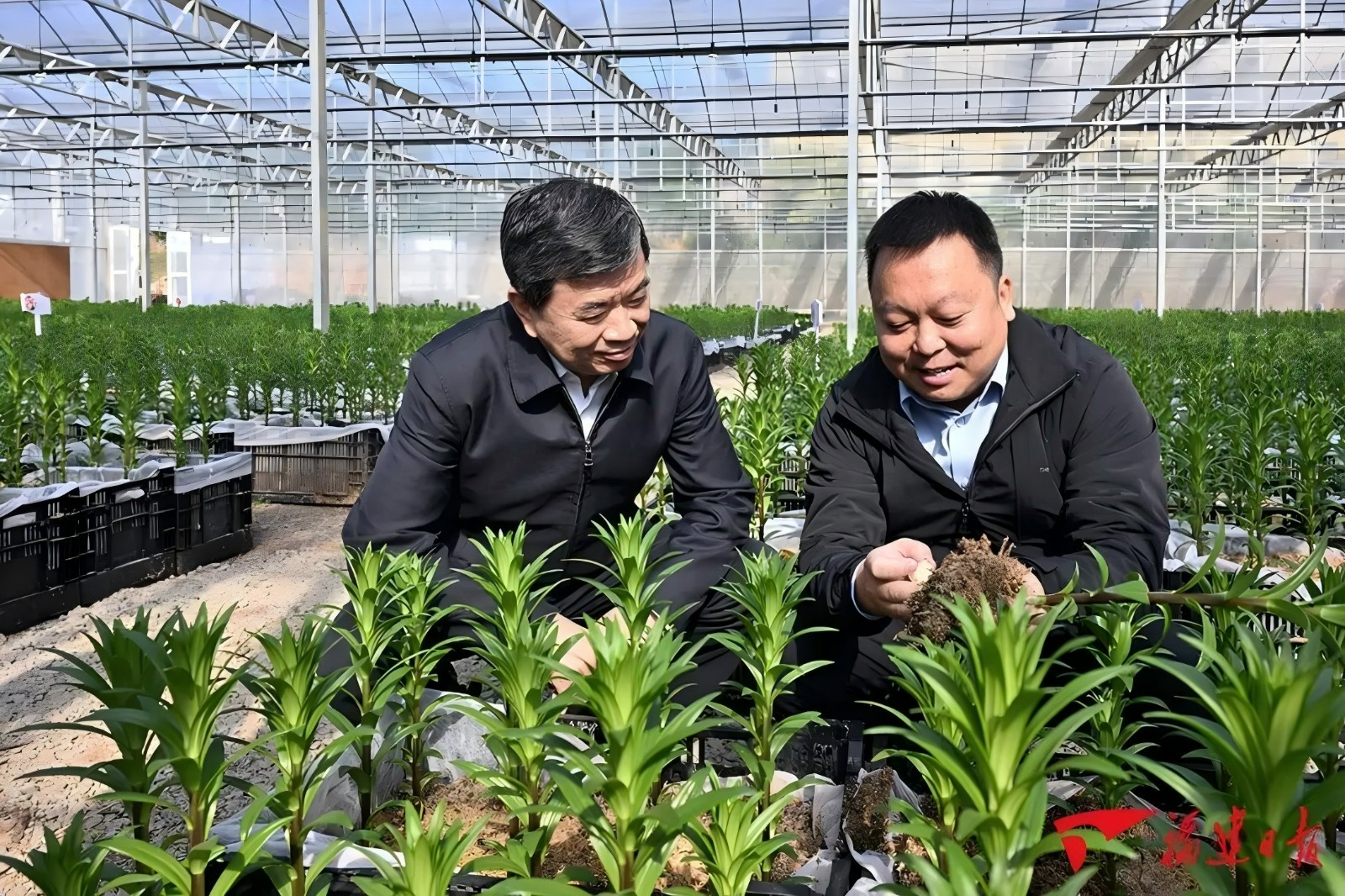 26日,周祖翼在大横镇大横村百合种源研发中心调研。