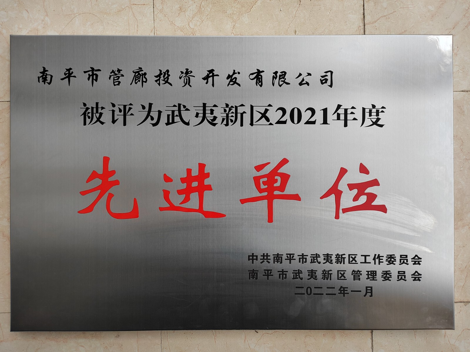 1月20日,武夷新区管理委员会召开2021年度工作总结大会,会议对先进集体和先进个人进行了表彰,南平市管廊投资开发有限公司获得“武夷新区2021年度先进单位”荣誉称号,郑积荣同志获得“武夷新区2021年度先进个人”荣誉称号。
