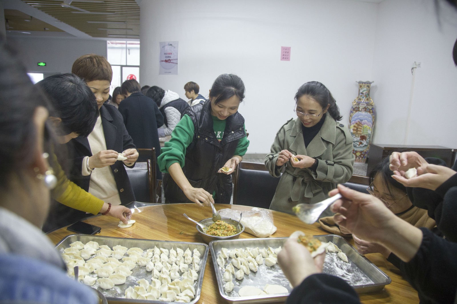 “三八”节这天,水溪口公交场站内处处笑靥如花,女职工趣味运动会精彩开赛,竞速毛毛虫、双人运气球、自行车慢骑项目依次登场,或小组协作,或互相配合,或单打独战,现场气氛热烈,趣味十足,掌声、笑声、喝彩声此起彼伏,女职工们赛出了风采,玩出了精彩,展现出多样魅力。在员工食堂内,女职工们化身为巧手“大厨”,纷纷使出看家本领,嘻笑间,一个个形态各异的饺子新鲜亮相,等到香喷喷、热气腾腾的饺子端上桌,大家围坐一起品尝,集体大家庭的快乐弥满在食堂,暖在心间。