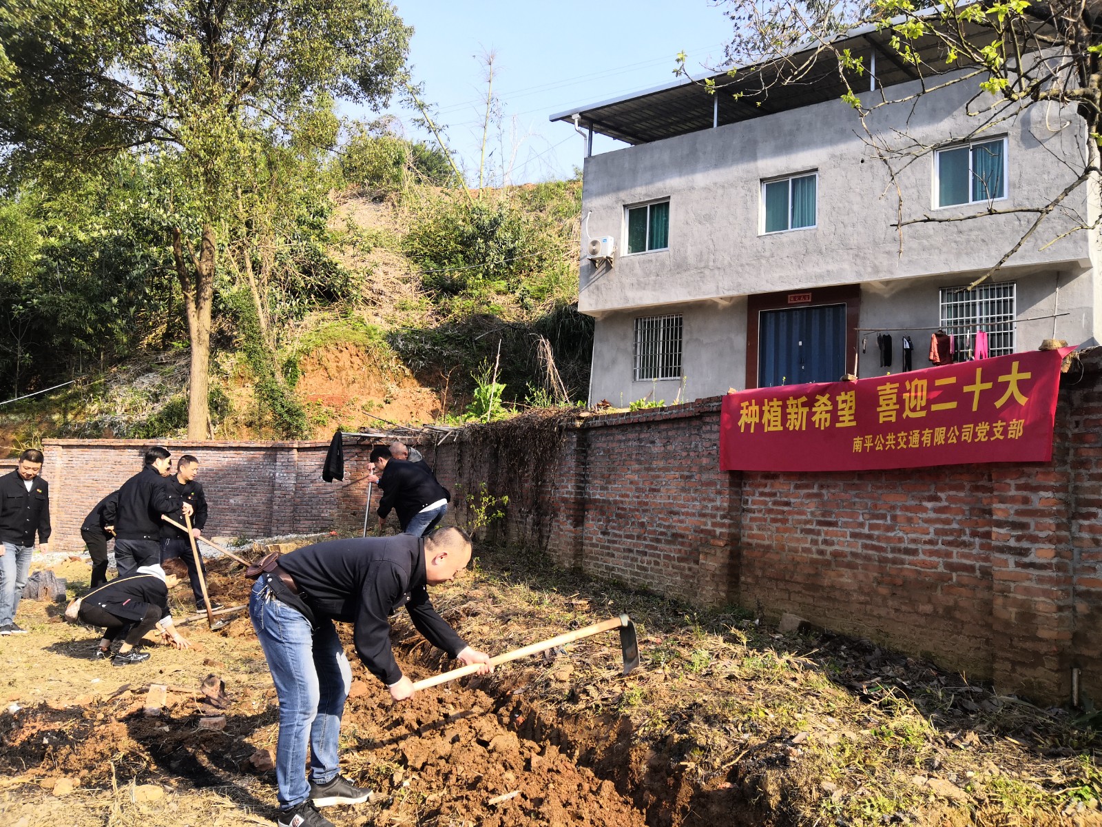 在延平东站公交场站内,随处可见公交人忙碌的身影,支部书记连振明带头,党员团员齐上阵,大家通力协作,配合有序,有的挥锄扬镐,有的搬运土石,有的扶苗,从挖坑整地、栽植树苗,到扶正压实、提桶浇水,各道工序一丝不苟,流下的是汗水,种下的是希望。经过一个多小时的劳作,东站喜添9名绿色新成员,寓意公交发展永焕新彩,党的事业发展永无止境,共产党员的初心永远不变。