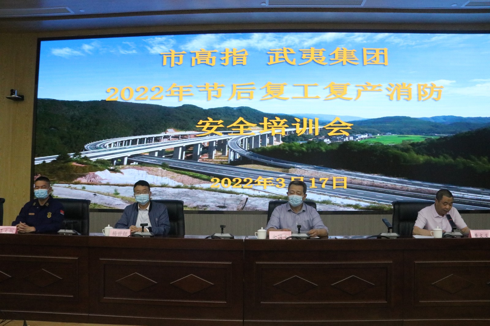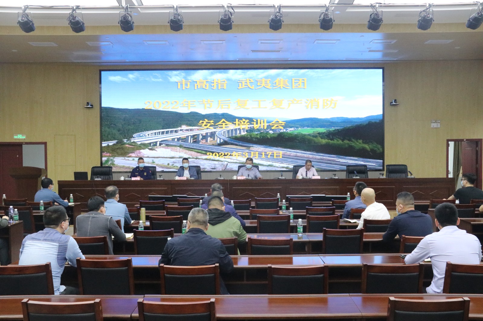 根据《南平市消防安全委员会办公室关于服务企业复工复产开展消防安全大培训活动的通知》(南消安委办〔2022〕6号)文件精神,认真落实企业复工复岗前“开工第一课”学习工作要求,持续强化疫情防控期间安全生产和消防安全管理工作,确保各所属单位企业有序复工复产,推进南平市高速公路建设系统和武夷集团安全形势稳定向好。市高指、武夷集团于3月17日,通过视频会议的方式开展了节后复工复产消防安全培训,各单位分管安全领导、安办负责人、安全管理人员参加会议,合计70余人。