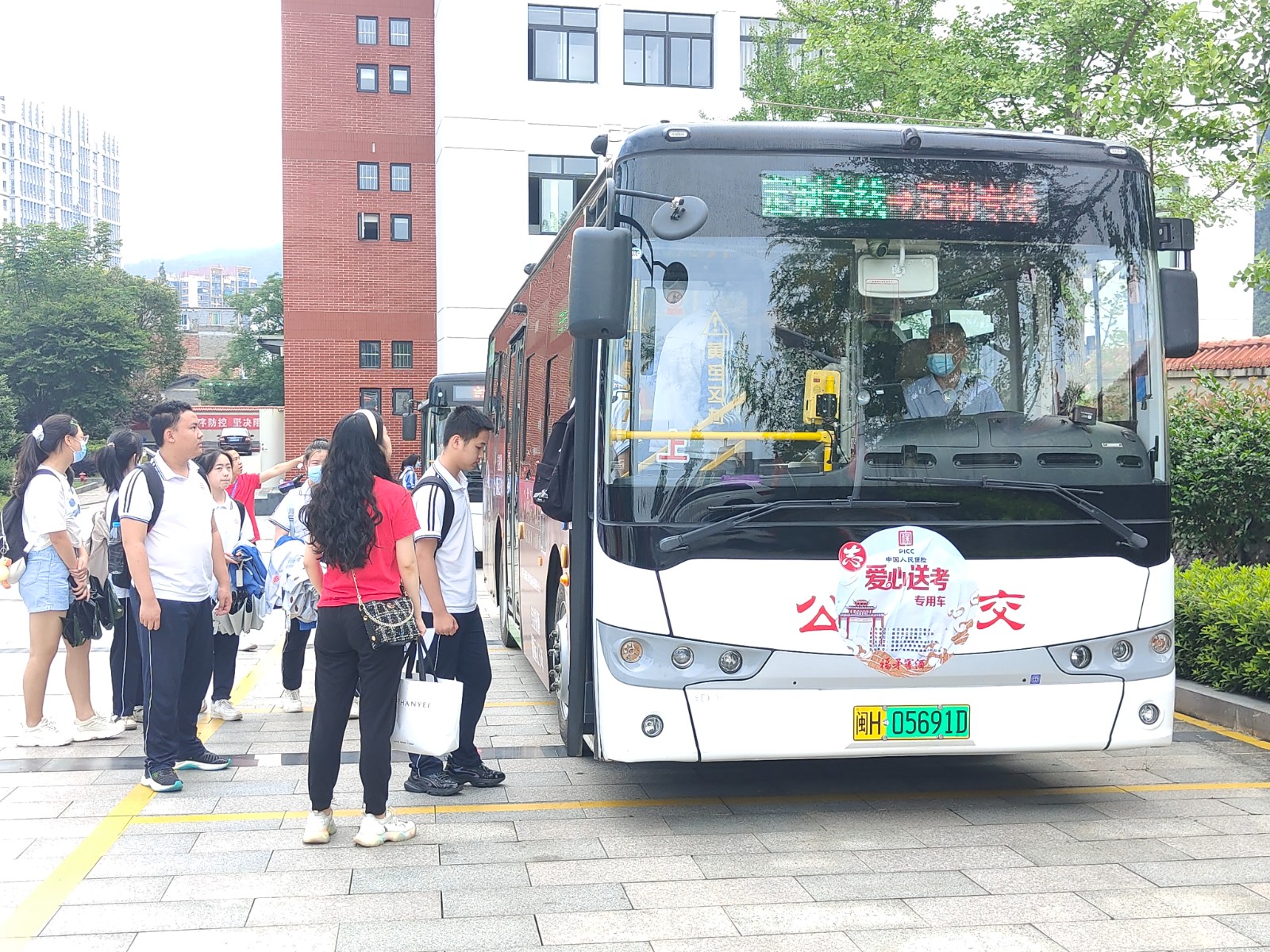 8点10分,第一趟高考接送车闽H05691D顺利到达一中考点,获得考生及家长的一致好评。