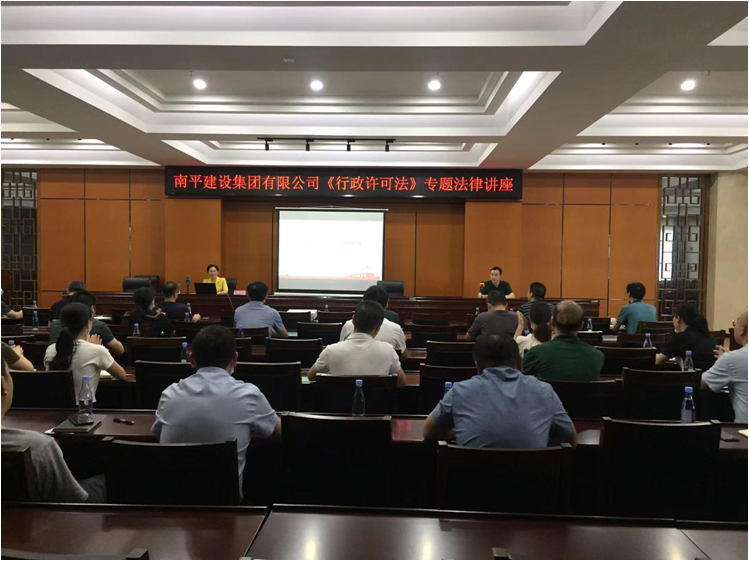 为深入学习宣传贯彻习近平法治思想,加快建设集团管理人员行为规范,提升管理人员预防和治理腐败能力,防止公共权力滥用。6月22日下午,南平建设集团邀请福建闽越律师事务所刘丽云律师在集团二楼多功能会议室开展以“《行政许可法》重点解读”为主题的专题法律讲座。集团各部门及权属子公司负责人及有关人员共计40人参加培训。