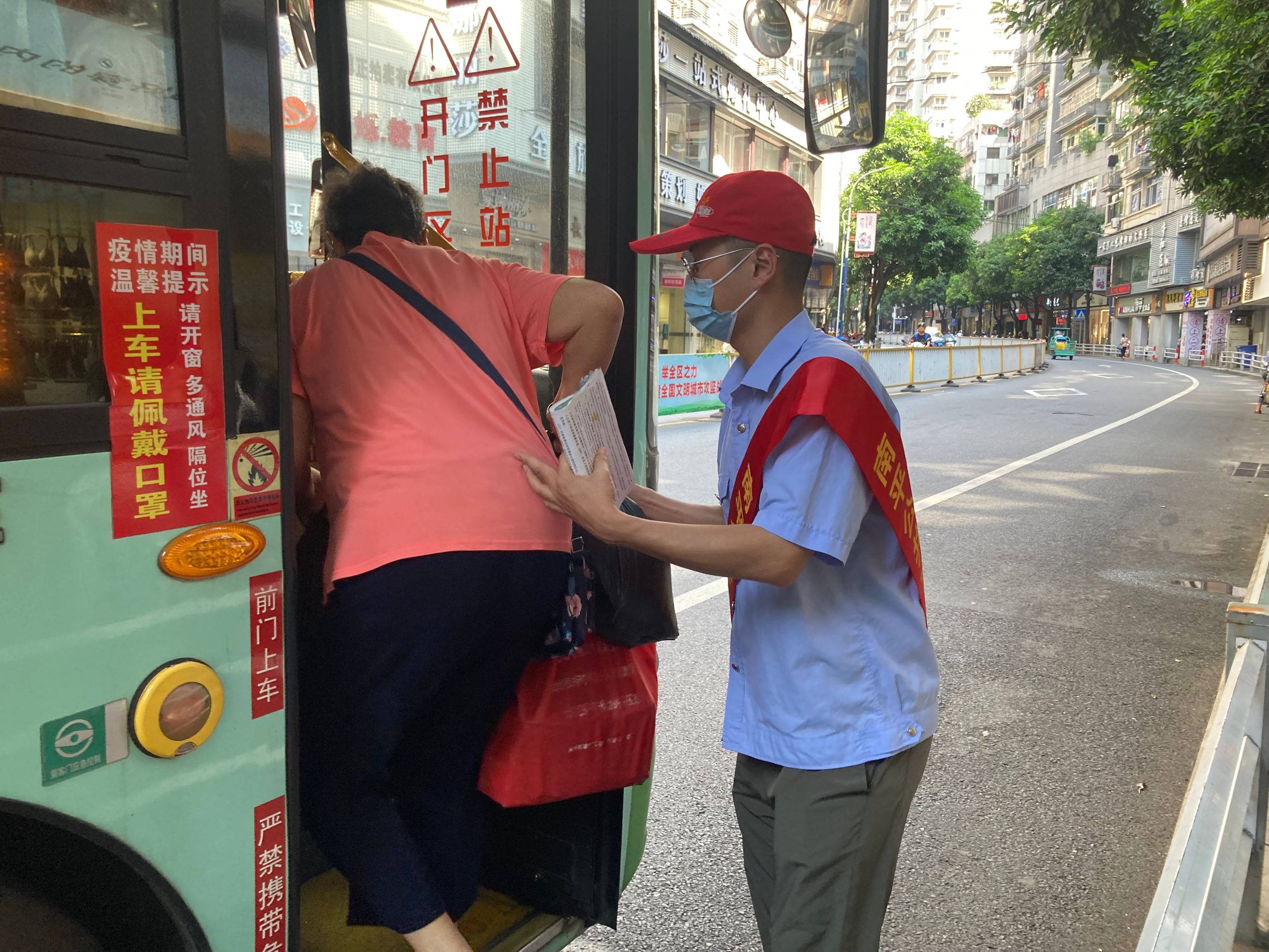 上午9时许,十余名党团青年头戴志愿帽,身披志愿服务绶带来到文化广场、人民医院、四鹤等客流密集点开展文明交通、绿色出行宣传,向来往乘客提供乘车线路咨询,对公交车实时动态查询软件“掌上公交”的使用方法进行详细讲解,同时向出行市民发放《绿色出行知识》、《规范用卡乘车注意事项》等宣传资料,引导乘客有序乘车,倡导广大市民共建文明城、共享绿色生活。