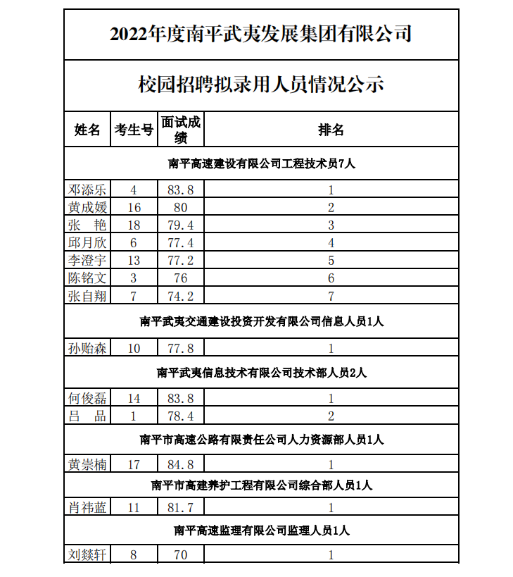 为认真贯彻市委市政府关于进一步做好稳就业、保就业工作部署,根据《关于组织参加南平市首届“才聚武夷”人才活动月暨第五届“人才·南平校园行”活动的通知》(南人函〔2021〕95号)文件要求,经面试等程序,拟将邓添乐等13位同志录用为正式管理岗员工(详见附表)。