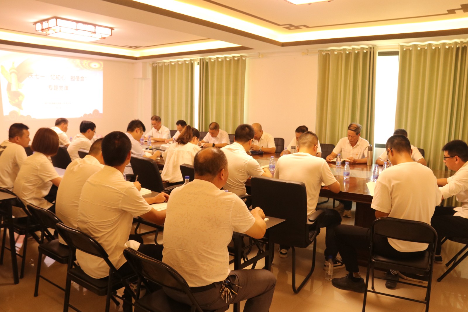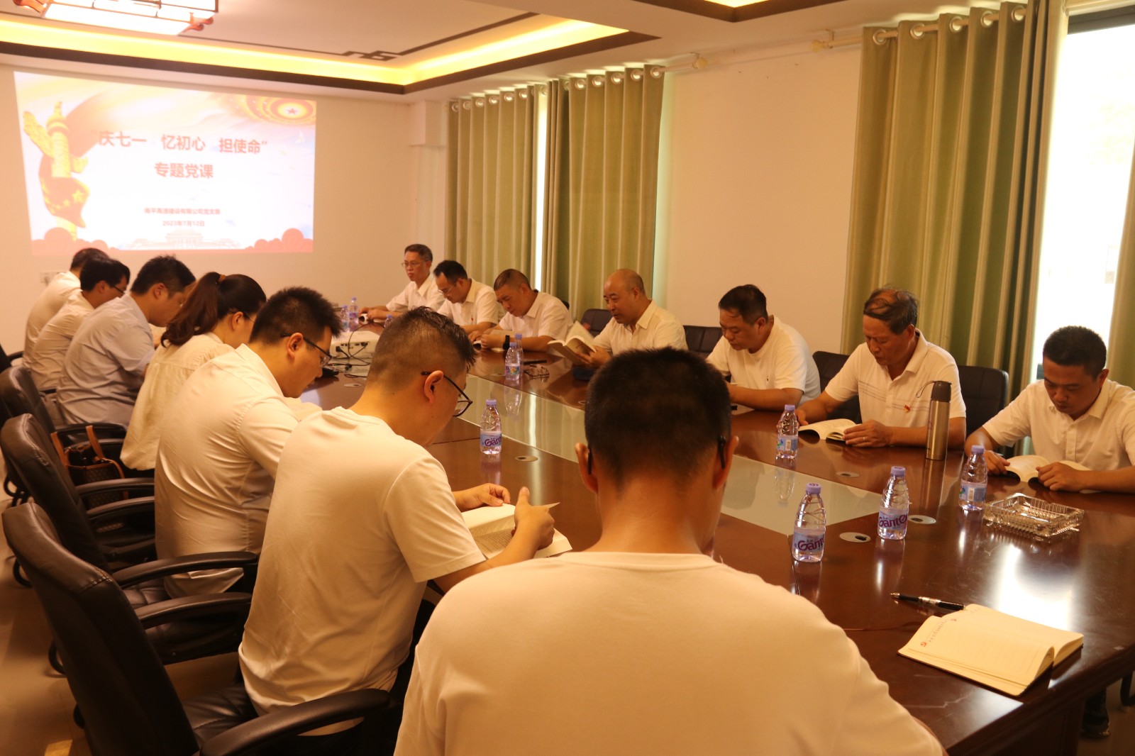 这是高速建设公司党支部在项目施工一线开展的主题党日学习,高速建设公司党支部40多名党员和沙南高速AI合同段临时党支部的党员在一起交流项目建设当中党支部如何发挥堡垒作用,党员在项目建设中如何发挥攻坚引领作用以及新技术的应用。