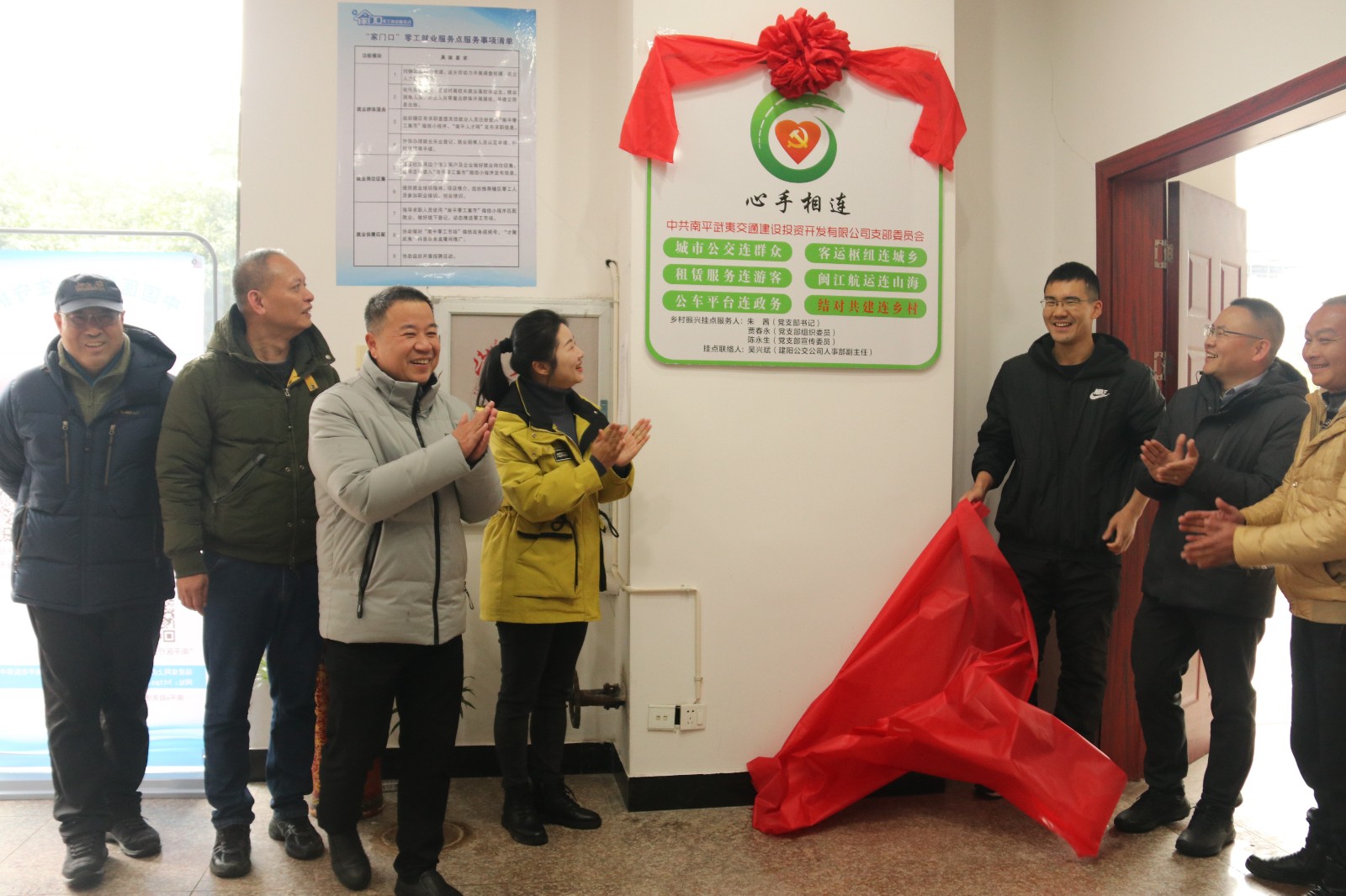 在麻沙镇人力资源和社会保障所,交投公司党支部书记、董事长朱茜和麻沙镇副镇长吴欣哲共同为村企共建党建品牌揭牌。