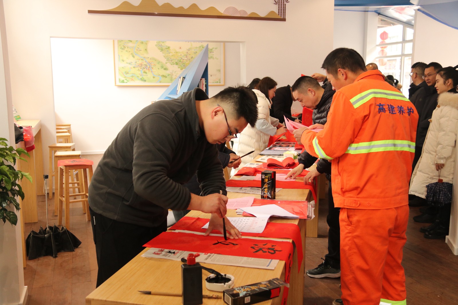 活动中,集团书法爱好者吴延年、李渊怡、卢丰盛还为麻沙镇群众现场挥毫写春联送福字。