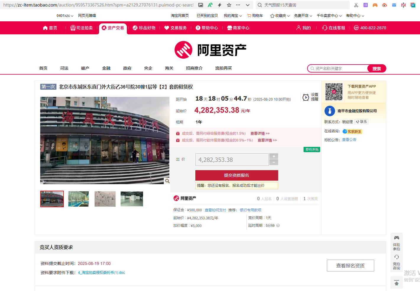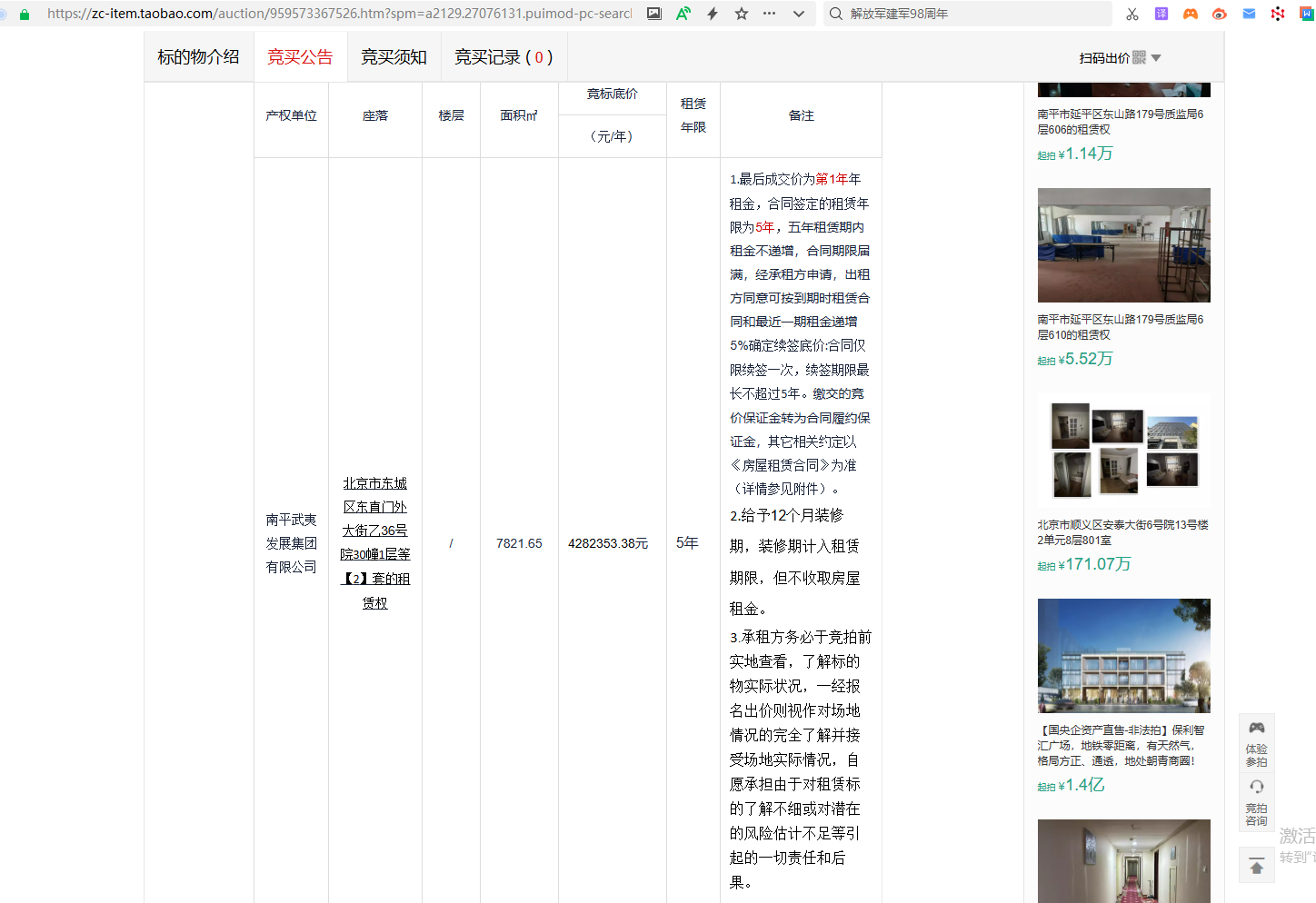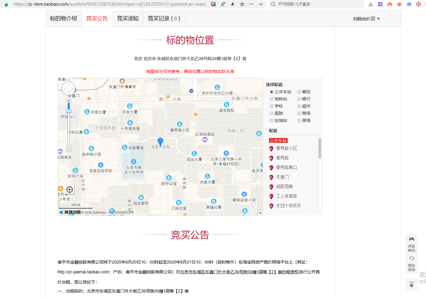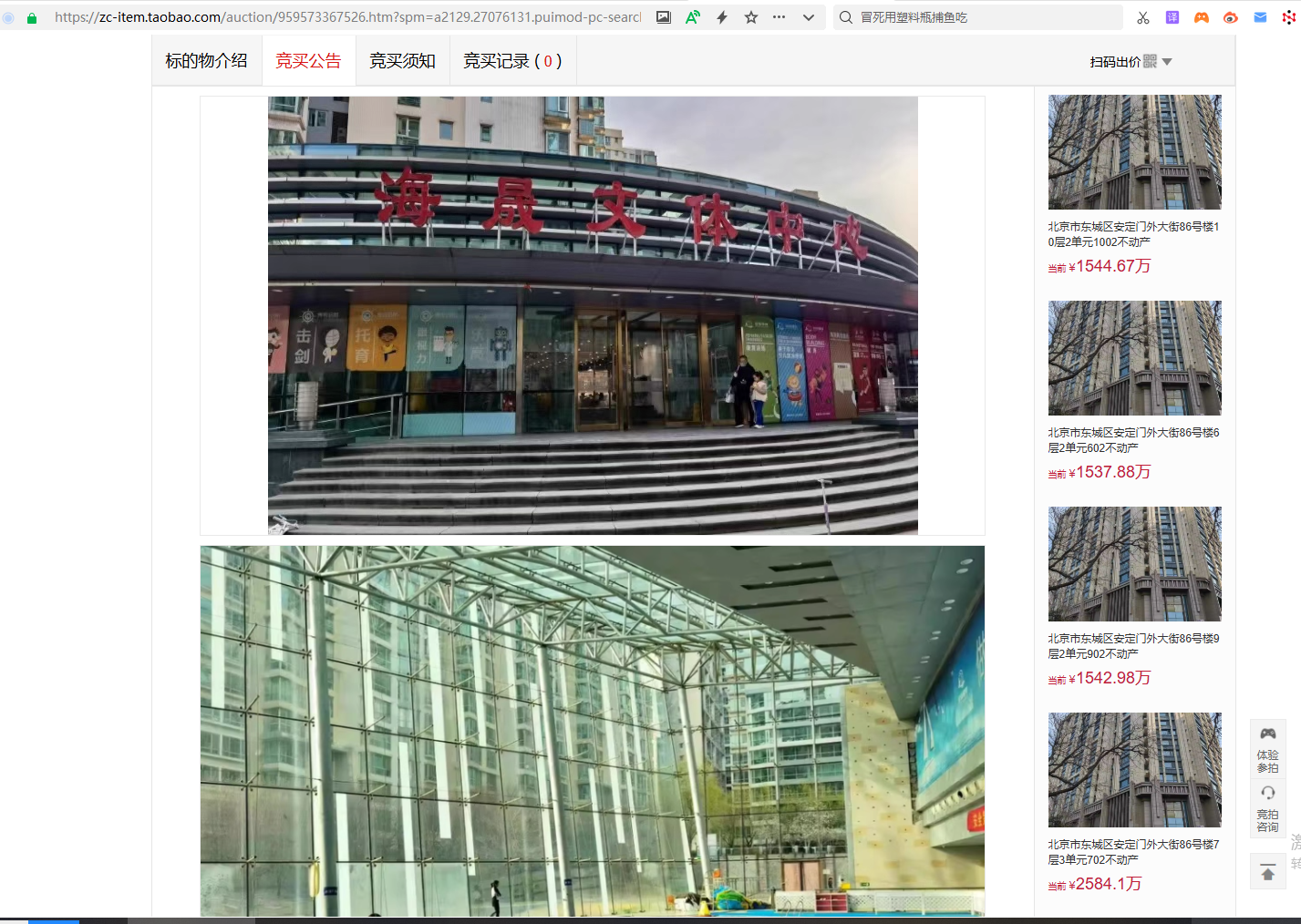北京市东城区东直门外大街乙36号院30幢1层等【2】套的租赁权竞买链接