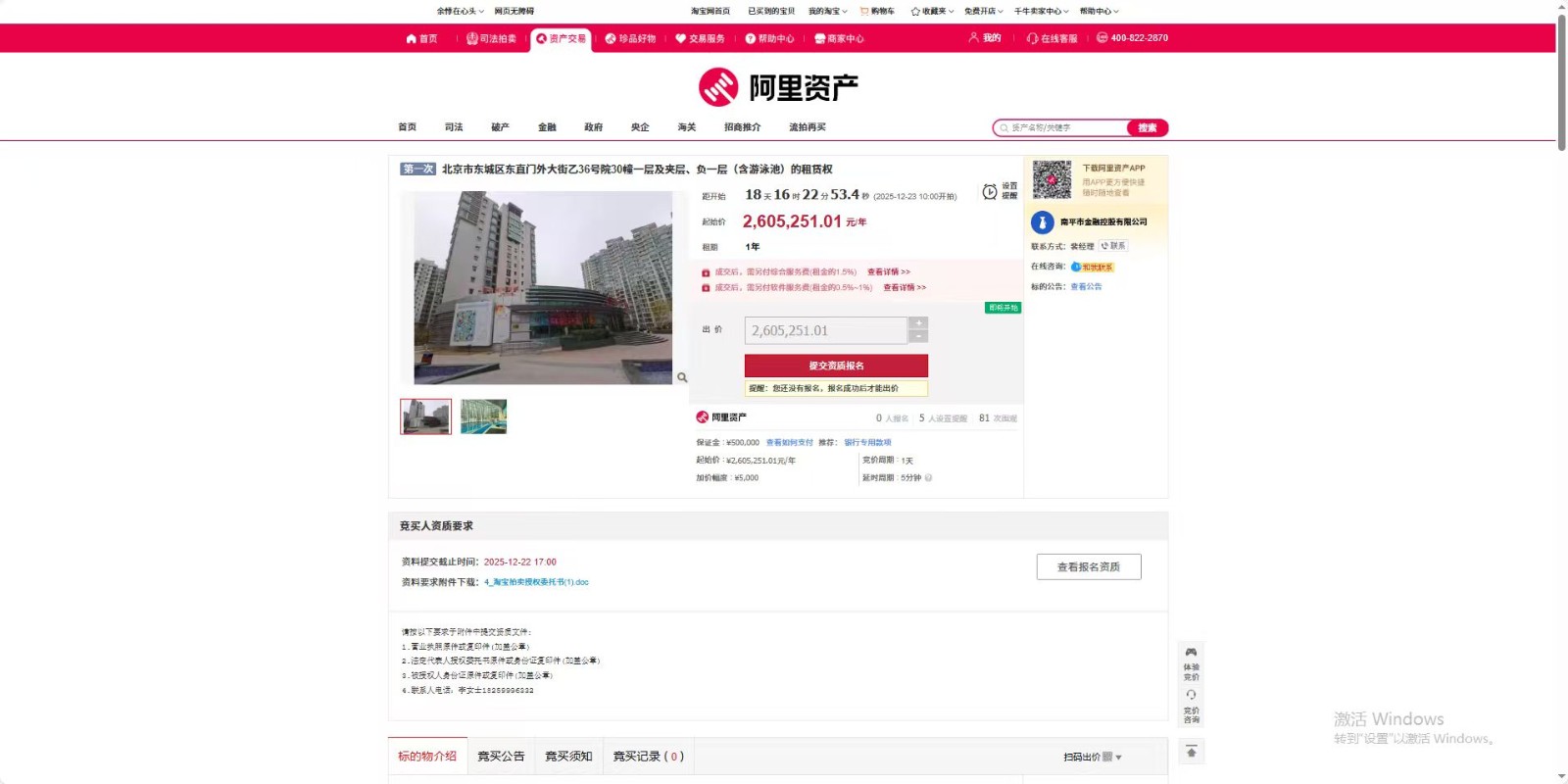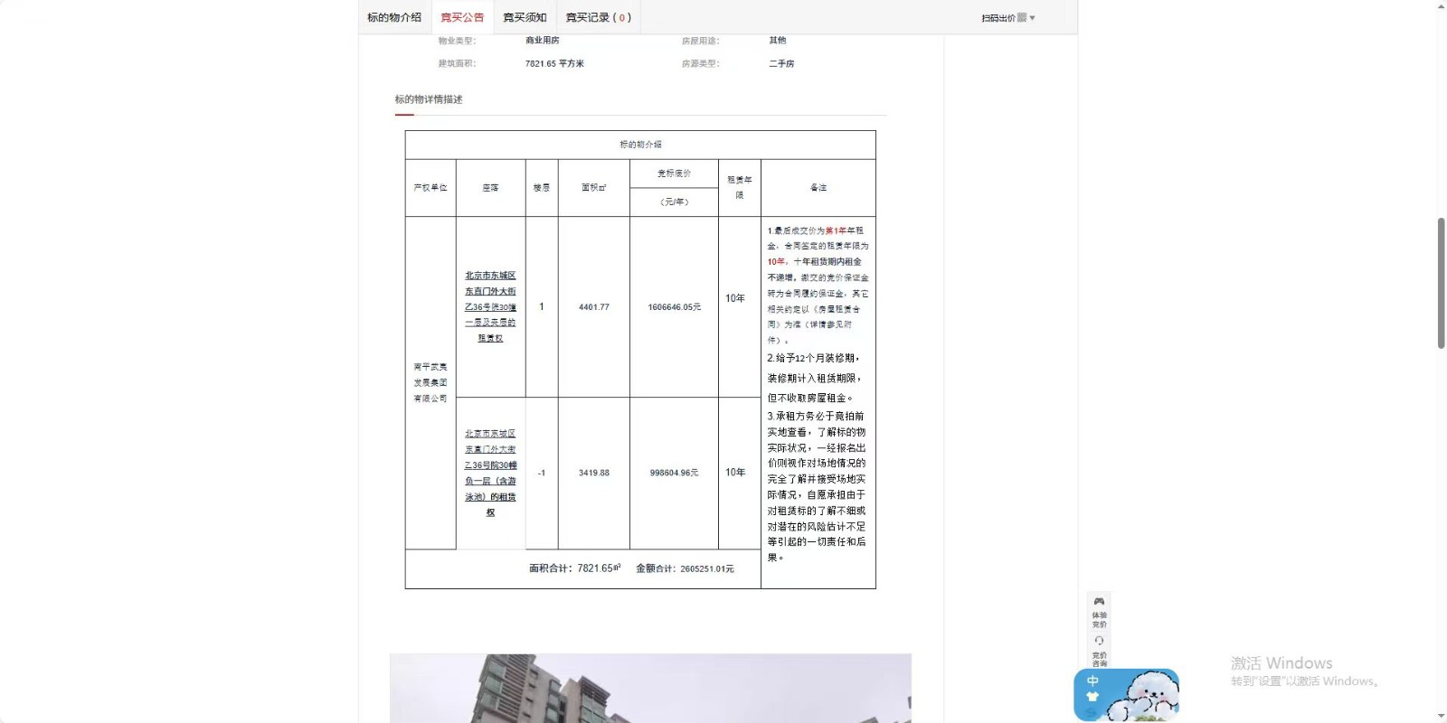 北京市东城区东直门外大街乙36号院30幢一层及夹层、负一层(含游泳池)的租赁权