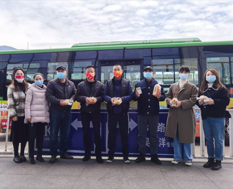 1月31日下午,南平市夏道保温安装有限公司员工代表和南平广播电视台、公交宣传大使陈婵娟到达延平站公交首末站,亲手为公交驾驶员送上爱心早餐,“师傅们,辛苦了,祝您新年快乐!”一份份“爱心餐”成为驾驶员心头的“暖心餐”。