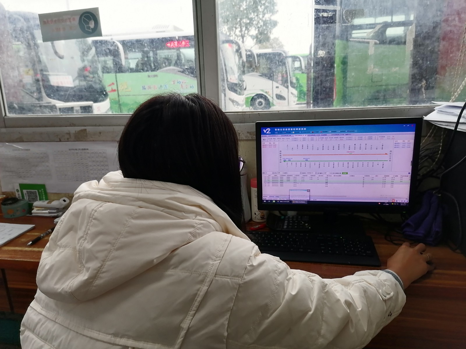 春节,当大家与家人欢天喜地、阖家团聚在一起时,交投公司所属建阳公交公司驾驶员、站务员和往日一样,以高度的敬业精神,春节仍坚守在岗位一线,“春节我坚守,照常保畅通”。K2路公交驾驶员廖友春大年初一早到上6点40多就到达西区停车场,如往常一样,清洁车辆、检查设备、通风消杀,准备工作就绪后,7点准时从西区公交站发车前往高铁南平市站。高铁南平市站公交发车点站务员刘健珍,在聚精会神地操作车辆智能化运营安排。