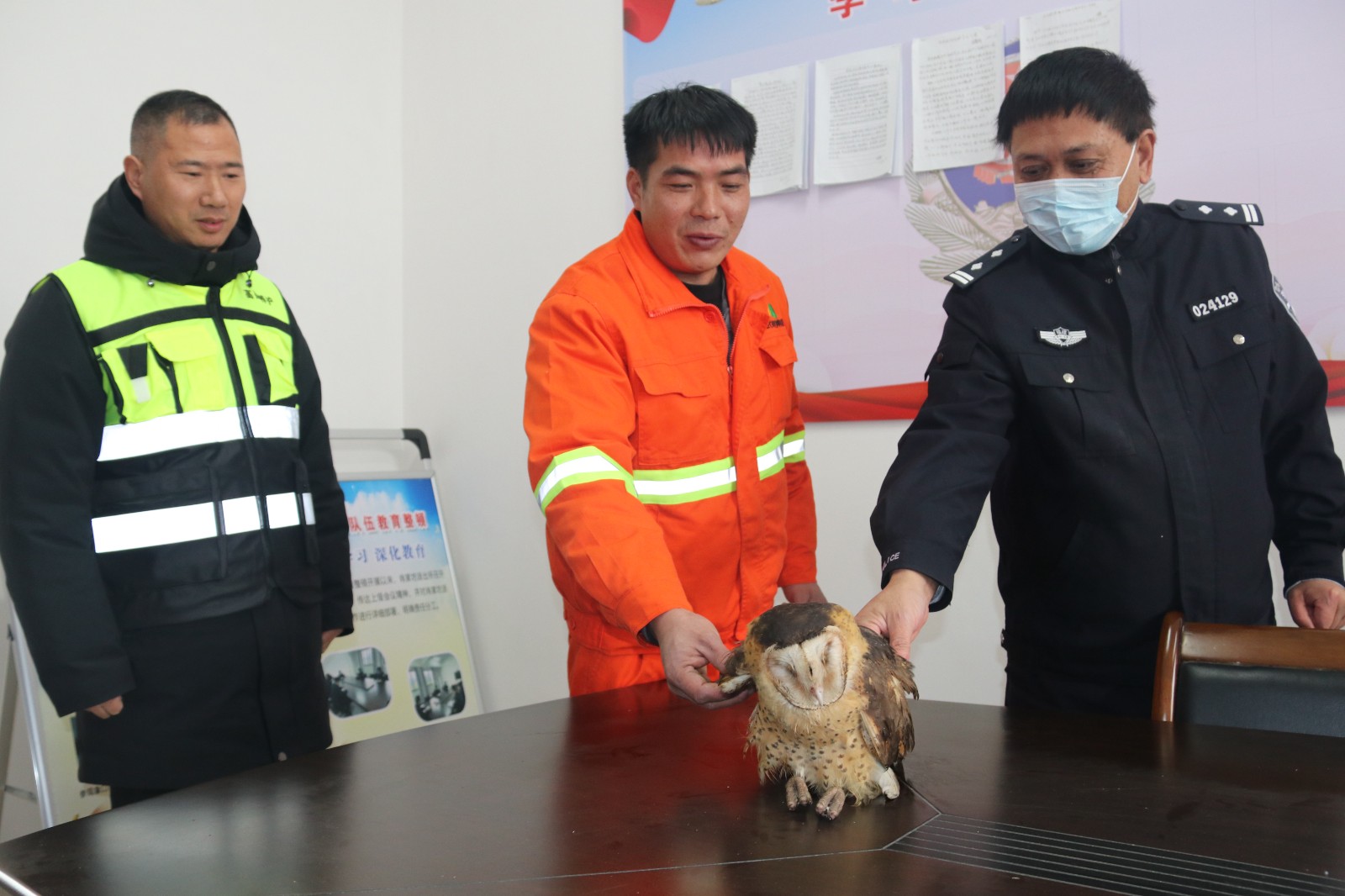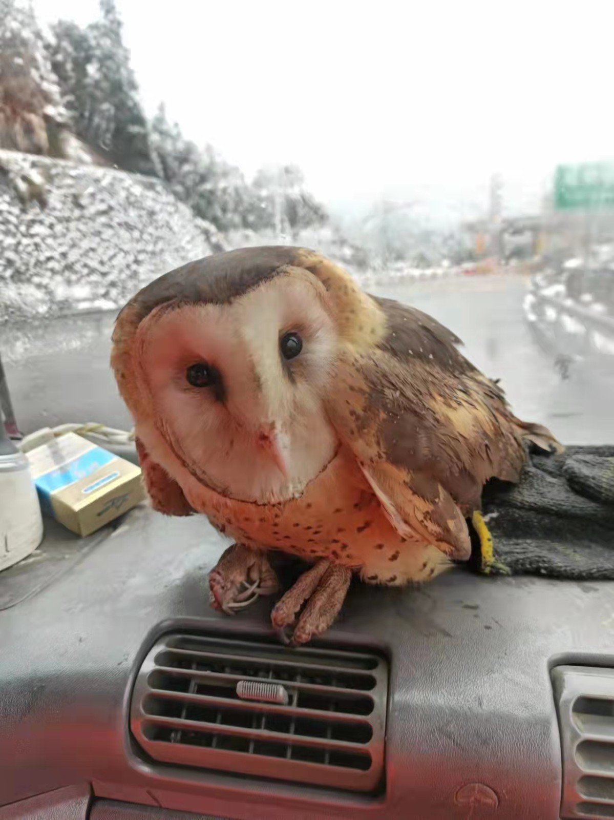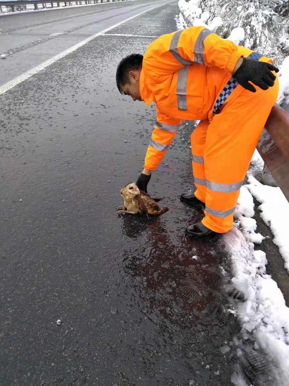 2月21日上午,南平市高建养护工程有限公司邵武西养护站的工作人员在浦武高速AK201+200路段进行抗冰除雪作业时,发现一只小鸟受伤趴在行车道上,随时可能会被过往车辆碰撞,影响行车安全。养护人员在设置警示标志、保证安全的前提下,将其抱起放到养护车上。随后,养护人员紧急联系当地邵武市公安局肖佳家坊派出所,经确认受伤小鸟为国家二级保护动物猴面鹰(草鸮)。派出所工作人员检查后发现猴面鹰伤势不重,对其进行了消毒处理和简单包扎后将会移交给当地动物救助站,待完全康复后放飞大自然。