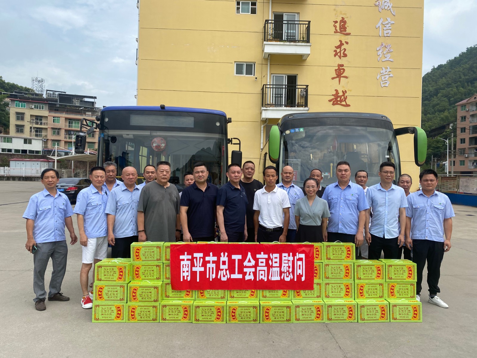 7月19日上午,南平市总工会兼职副主席王国华、市总工会四级调研员顾焕斌一行来到南平公交公司东坑公交转乘站,看望慰问一线驾驶员和维修工,亲自送上防暑降温慰问品,表达工会“娘家人”的关心关爱之情。