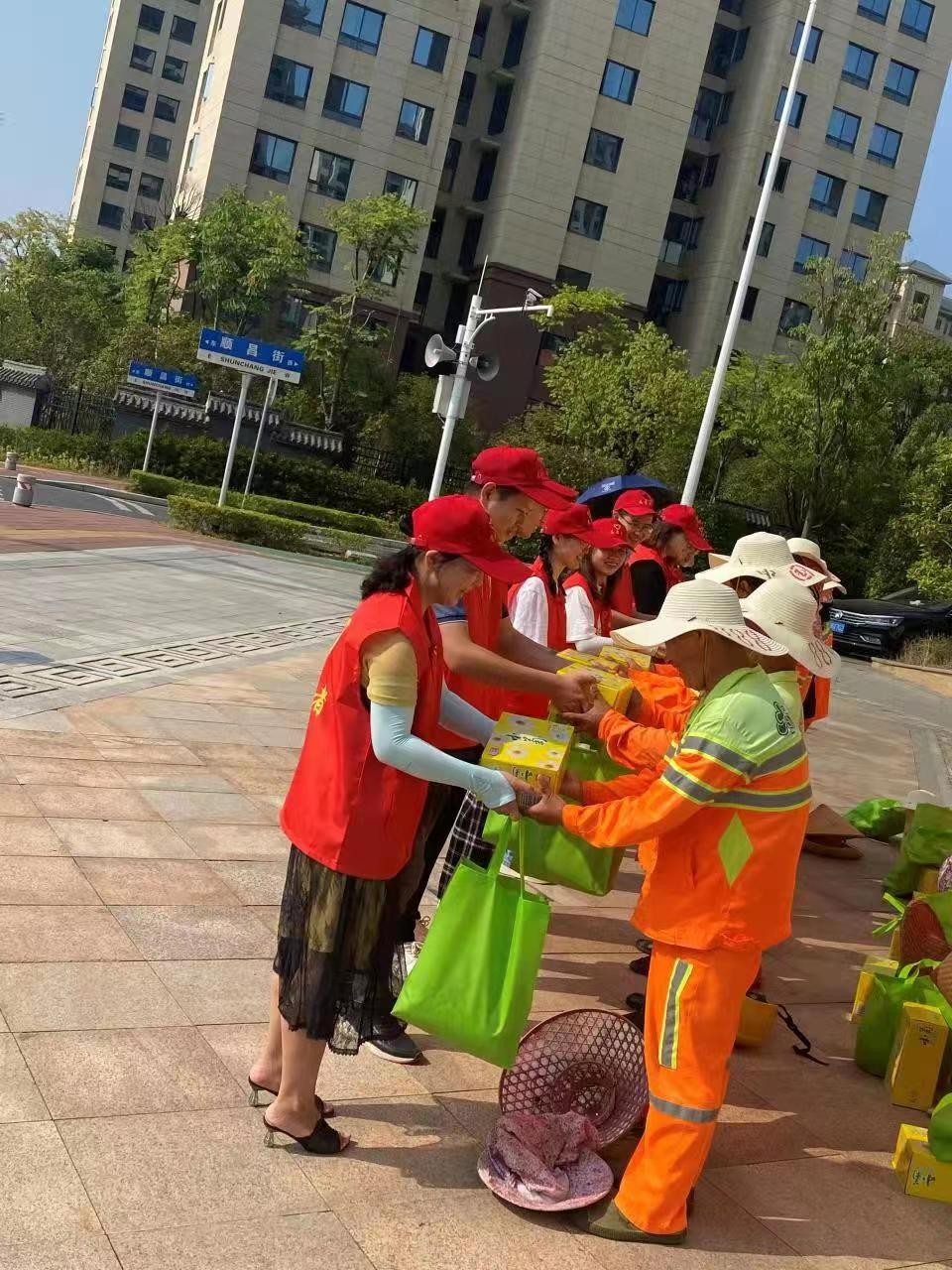 一份清凉,一份关怀。志愿者们为正在工作中的环卫工人们送上菊花茶、鱼腥草、绿豆、冰糖、藿香正气水、草帽等防暑降温“清凉大礼包”,并叮嘱他们注意自身防暑降温,劳逸结合。环卫工人们感受到了来自党组织满满的关怀,纷纷表示为这样的爱心点赞,感谢新武夷党支部在炎炎夏日里为他们送上很实用贴心的“清凉大礼包”,会把党组织的关心转化为工作的动力,用实际行动美化城市环境。