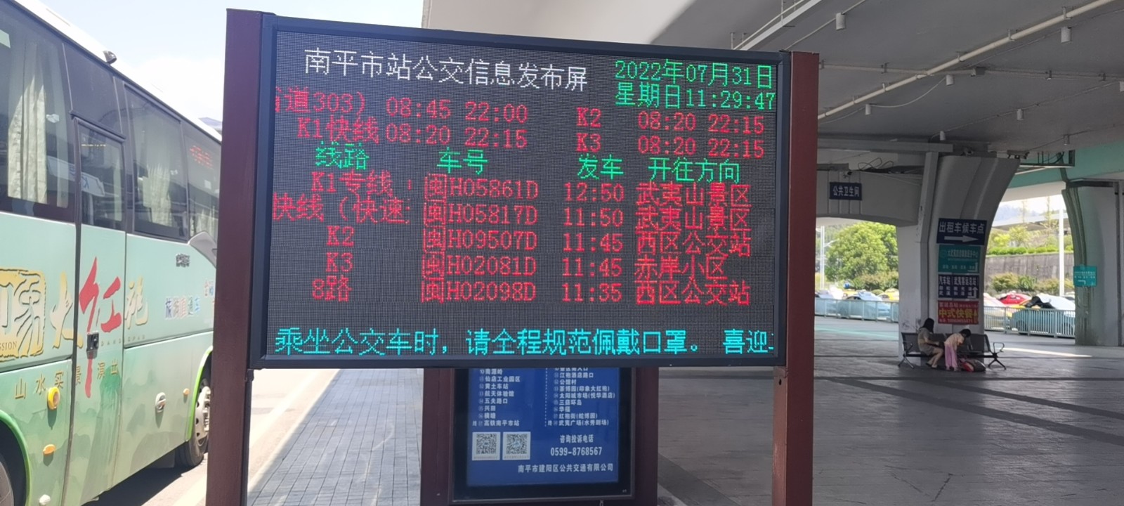 高铁南平市站属于南平市的一个大站,公交线路涵盖了K1专线、K1快线、K2路、K3路、8路等5条公交线路,主要接驳往返各地的市民及游客,客流量较大,虽然站点旁设置了公交服务咨询台,但是有时客流量大,站务员们还是力不从心,难以使所有市民都享受到高质量的服务体验。公交电子信息发布屏的推出,为建阳公交公司全力打造智慧公共交通系统迈进一步,改善了公共交通出行环境,提升了市民乘车效率,使公交服务向更加人性化、智能化、便捷化方向发展。