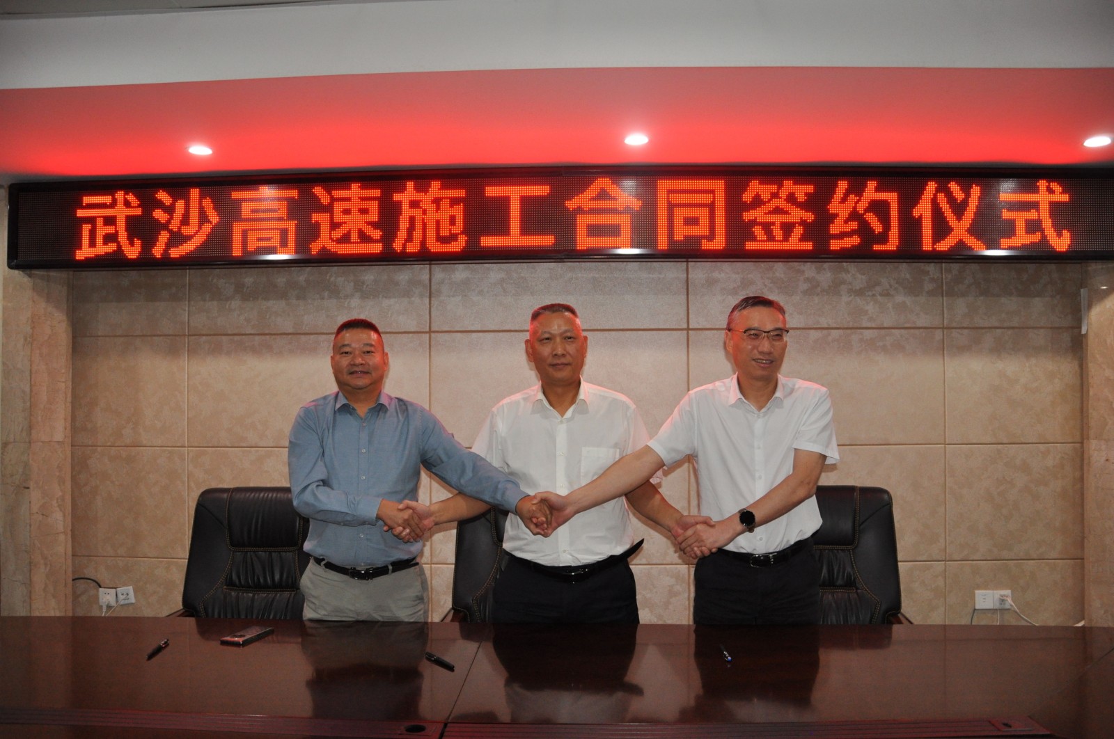 10月18日,武夷新区至沙县高速公路项目(南平段)A1标段施工合同签约仪式在武沙高速公路公司会议室举行。武沙高速公路公司总经理、法人代表郑景福与A1标段联合体中标单位福建省高速路桥建设发展有限公司董事长何澄平、南平高速建设有限公司董事长黄圣瑞签订了施工合同。