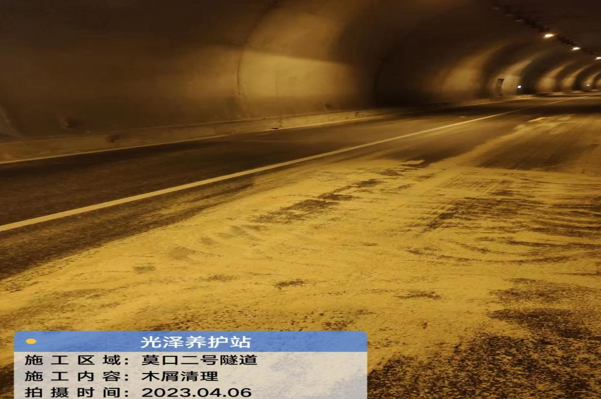 4月6日凌晨2时08分左右,高建养护公司接“12122”指挥中心应急响应:宁光高速段水北至光泽“莫口二号”隧道内路面出现了大量木屑散落高速公路主线,严重影响路面行车安全。