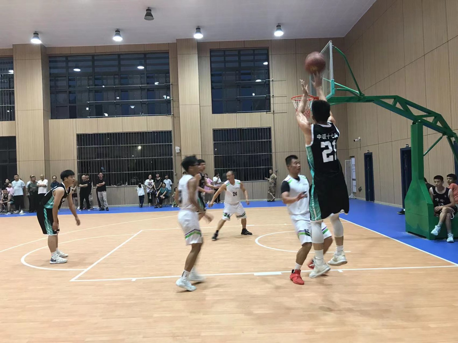 晚上6时30分,随着裁判员一声哨响,两队展开了激烈角逐,精准投篮、抢断冲锋、转身过人、传球配合......双方球员打得有来有回,以精湛的技术和默契的配合赢得了场下观众的欢呼。裁判和记分员公平公正、认真记录、评判准确。场下职工啦啦队激情高涨、文明观赛、呐喊欢呼、喝彩连连,极大地鼓舞了球员的气势。经过近一个小时的精彩对决,沙南A8队成功反超比分并以79:56的比分赢得比赛,赛终双方球员握手致意、相互赞许。