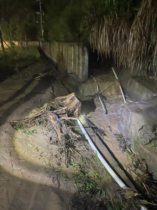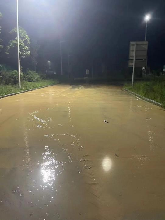 4月29日晚上20时许,武夷发展集团所属高建养护公司拿口养护站接到相关部门报警,顺邵高速公路外石服务区B区,因特大暴雨造成山洪爆发,泥石流汹涌而下,跃过排水沟直接冲击服务区匝道和后广场。造成服务区匝道和后广场地面迅速堆积了大量泥沙和树枝等杂物,严重影响了过往车辆安全。