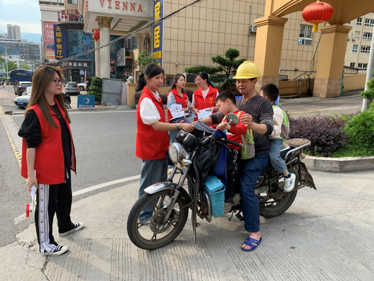 下午高峰时段,在南福路公司副总经理陈凌云的带领下,志愿者身穿红马甲,手持警示牌在延平区亿发维也纳酒店路口进行文明交通劝导。该路口人流、车流量大,处于多个出入口交汇,安全隐患多。志愿者们一边热情地向周边行人发放文明交通宣传单,宣传普及文明交通知识,传播文明交通理念。一边耐心劝导纠正乱穿马路、闯红灯、不戴头盔等不文明交通行为,引导过往行人遵守交通规则,注意交通安全,共同维护文明交通,自觉抵制交通陋习和随意横穿马路等违反交通规则的行为。