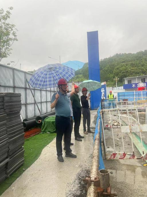 一行人深入项目施工现场,详细听取了项目部关于防汛度汛相关情况汇报,并着重对施工现场临边防护、临时用电、排水管道、雨水口及项目部防汛物资储备、应急预案等方面进行了检查。陈道富检查时强调,项目部一要增强风险意识,科学组织施工,严格落实各项安全生产制度要求,及时做好防汛安全隐患问题整改;二要举一反三,加强教育培训,提高工人的防汛意识;三要加强值班值守,时刻关注天气变化,密切监测项目边坡、基坑等易发生险情区域,随时投入抢险准备工作。