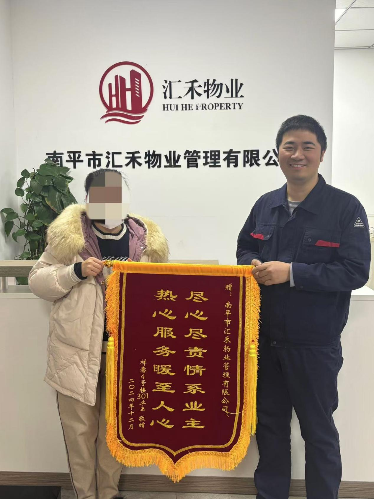 业主送来的锦旗不仅是对工作人员的认可,更是对汇禾物业的鼓励。在未来的日子里,汇禾物业承诺,将继续以饱满的热情和专业的服务,为每一位业主提供更加安全、舒适、温馨的居住环境。感谢每一位业主的支持与信任,您的满意是我们最大的动力。我们将继续努力,不断提升服务品质,坚持以党建引领,大力发展红色物业。积极践行社会责任,充分彰显国企担当,与您共同营造一个和谐美好的社区家园。