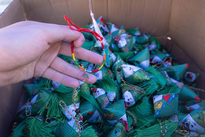 活动现场,香囊、五彩绳手链、艾草锤成为了大家的“心头好”!承载着美好寓意的香囊,带着艾草的清香、五彩丝线的祝福,被一一送到业主手中。小小的礼物,不仅传递着端午的传统文化,更串联起邻里间的暖暖情谊。