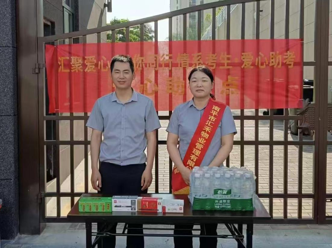 6月7日到9日,汇禾物业工作人员早早地在小区内等待,将这份爱心物资递到考生们的手中。