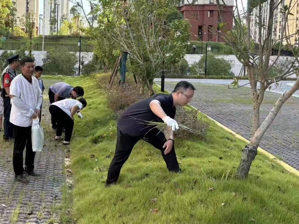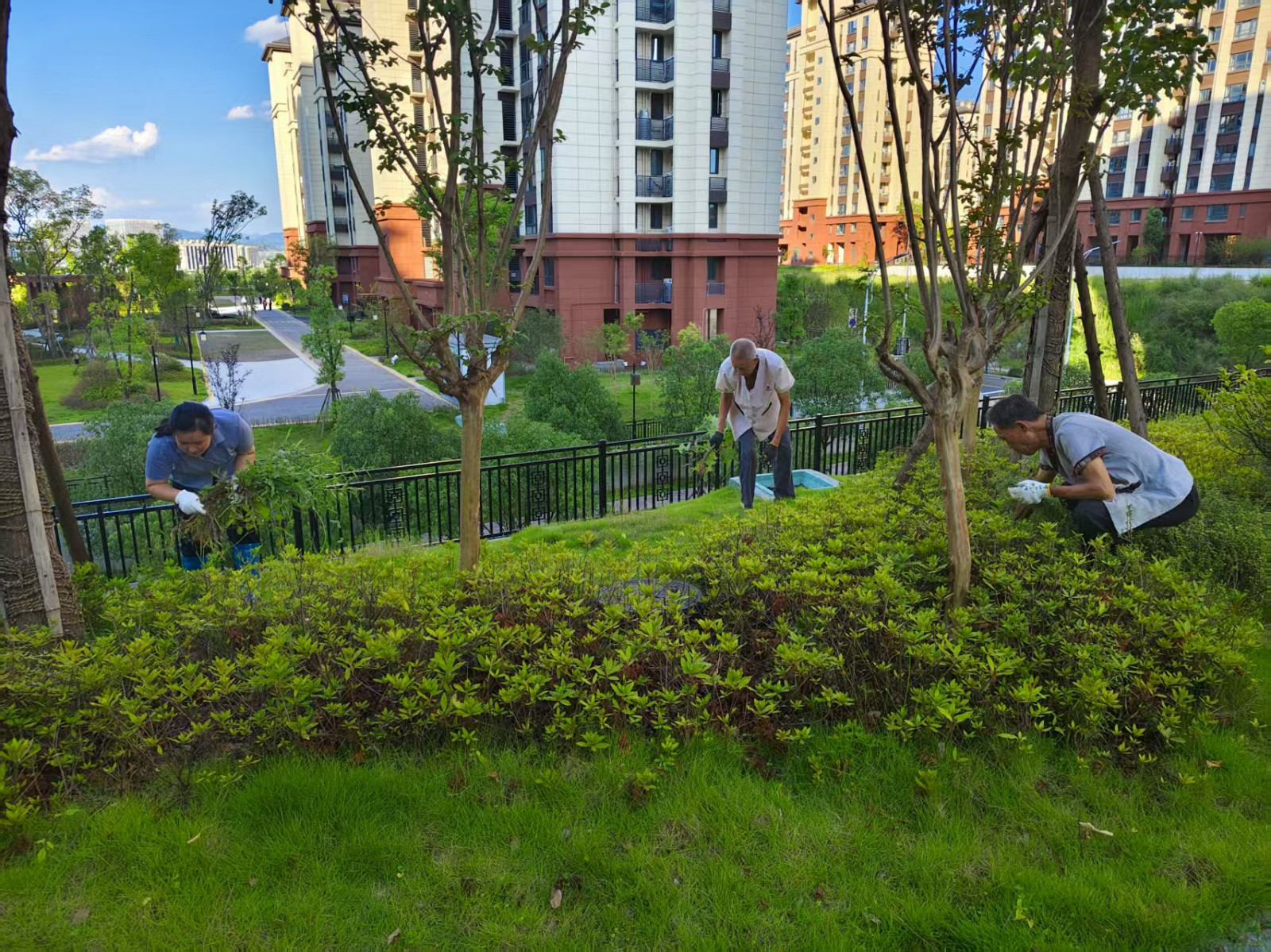 此次行动中,保安、保洁、客服、工程等多个岗位共计30名工作人员主动请缨,化身“除草卫士”。大家顶着烈日,分工协作,有的弯腰拔除杂草,有的清理枯枝落叶,不放过任何一个卫生死角。因为在每个人心中,都藏着一个共同的目标:让小区环境更整洁,让业主住得更舒心。