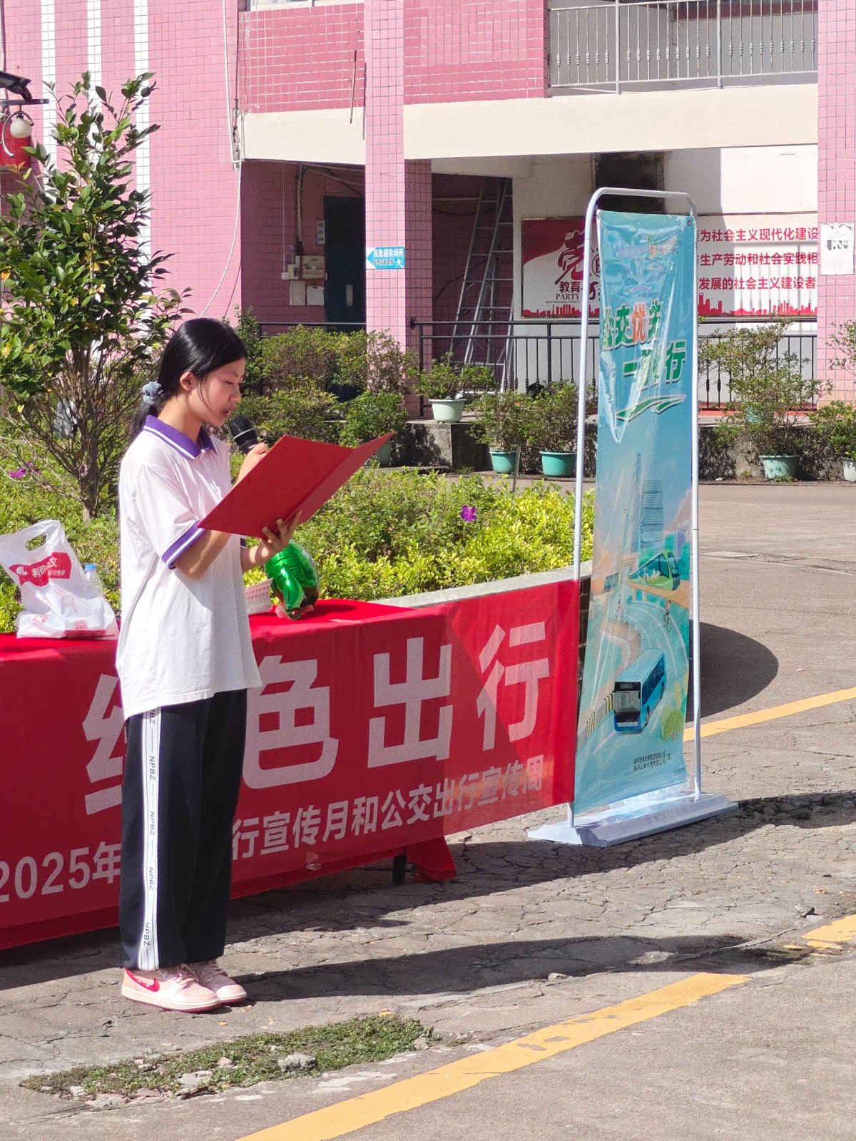 活动尾声,学生代表庄严宣读了《学生出行倡议书》,许下了争做绿色出行“倡导者、践行者、示范者”的青春承诺。