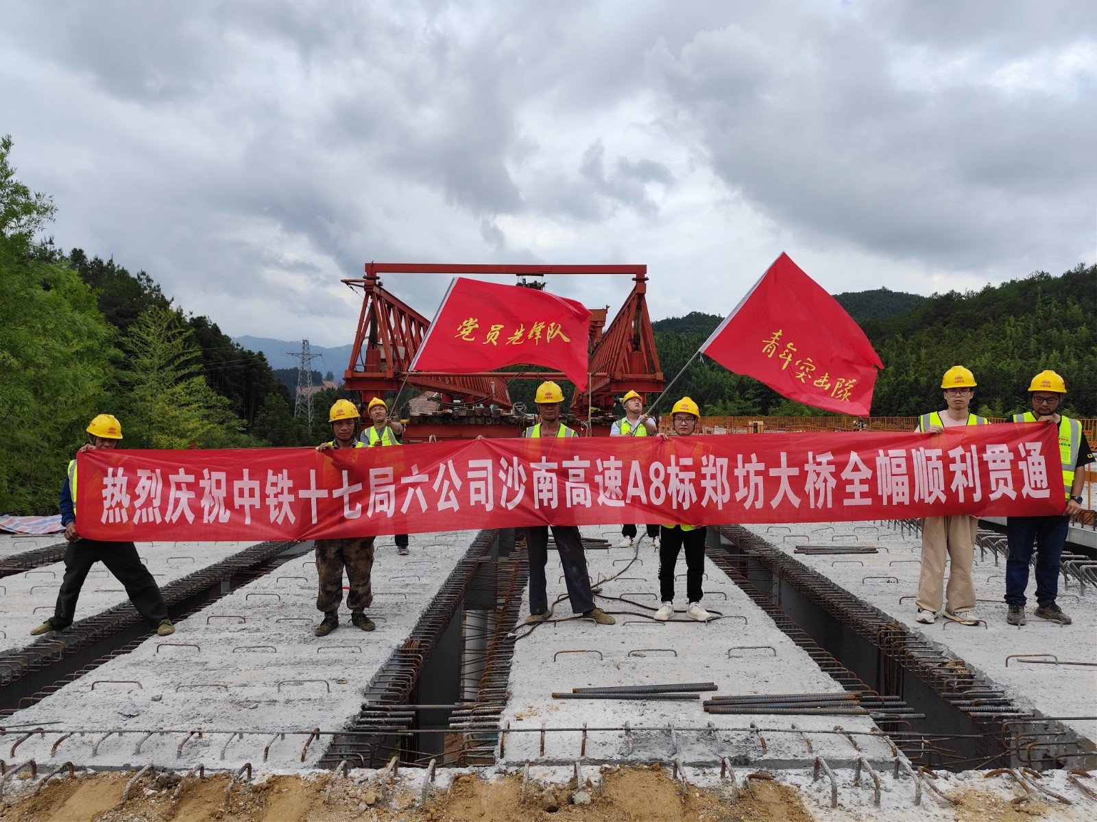 自4月14日,由中铁十七局六公司承建的沙南高速A8标郑坊大桥右幅顺利贯通后,5月28日,郑坊大桥全幅顺利贯通,标志着沙南高速向顺利通车迈向了坚实一步。