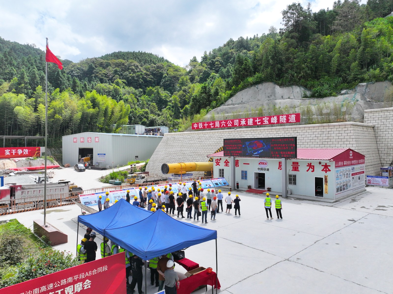 9月6日,南平市公路事业发展中心、南平武沙高速公路有限责任公司在中铁十七局六公司沙南高速A8标七宝峰隧道举办七宝峰隧道标准化施工观摩会。南平市公路事业发展中心、各县(市)公路事业发展分中心等一批业务技术骨干,共计60人,参与到施工现场观摩学习,项目经理吴燕飞、项目党工委书记师建仪参加观摩学习活动。