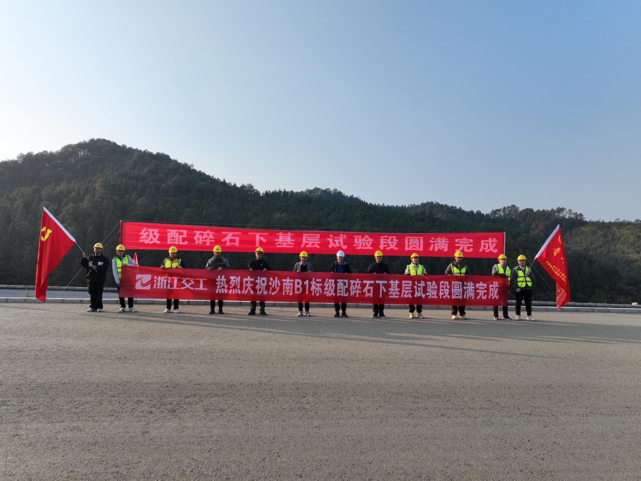 12月14日下午,沙南高速公路南平段B1合同段级配碎石下基层试验段顺利完成铺筑,标志着项目路面工程进度迎来全新突破!