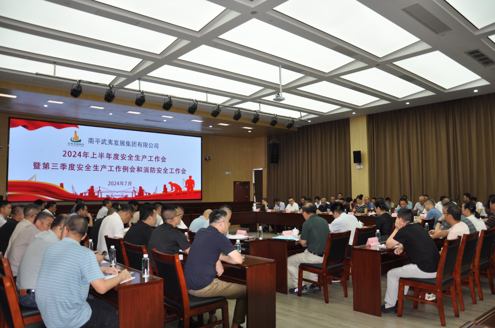 为贯彻落实习近平总书记关于安全生产的重要论述和重要指示批示精神,不断加强和改进安全生产工作,为集团高质量发展奠定坚实基础。7月3日上午,武夷发展集团召开2024年上半年度安全生产工作会议暨第三季度安全生产工作例会和消防安全工作会议。集团领导胡宗浩、黄荣琪、李育昕、周隆武、安全总监黄文义、总经理助理林忠贤、集团各部门负责人及二级成员公司主要负责人、分管领导、安全管理人员共计86人参加会议。会议由集团党委委员、总工程师李育昕主持。