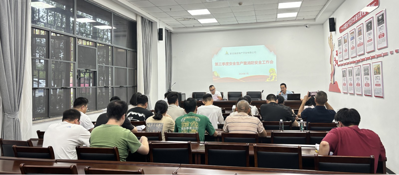 为深入学习贯彻习近平总书记关于安全生产的重要论述和重要指示批示精神,不断加强和改进安全生产工作,强化责任落实。7月26日,福建新武夷房地产开发有限公司于一楼会议室召开第三季度安全生产工作暨消防安全工作会,公司总经理、班子成员、各部门负责人及相关管理人员共计30人参会,会议由分管安全副总经理邱朝标主持。