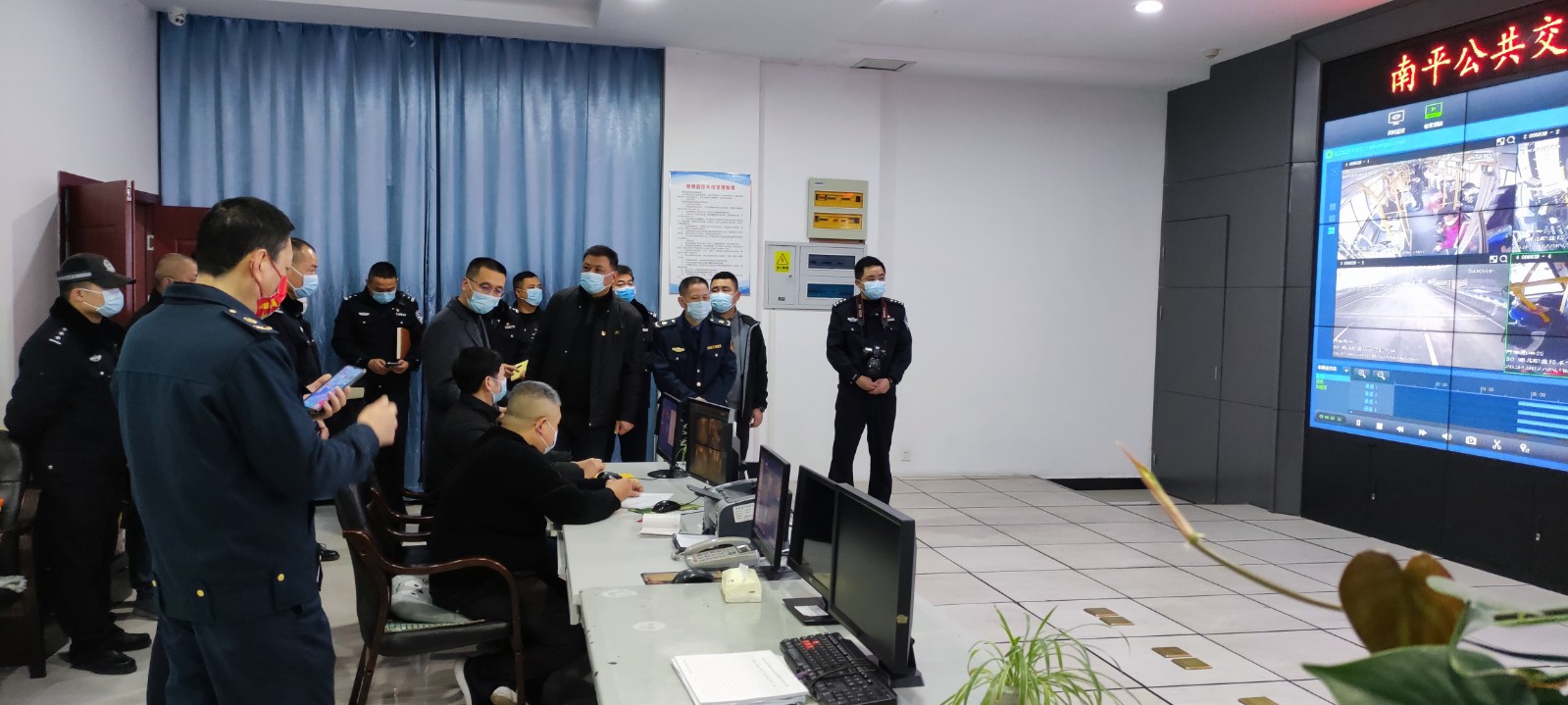 在南平公交信息中心监控大厅内,南平公交公司董事长连振明、总经理陈昕向缪义平副区长详细汇报了公交车辆的实时监控流程及安全防范控制系统的实操运用