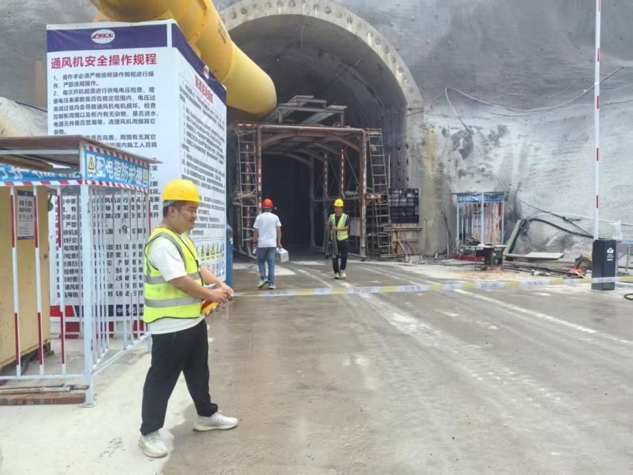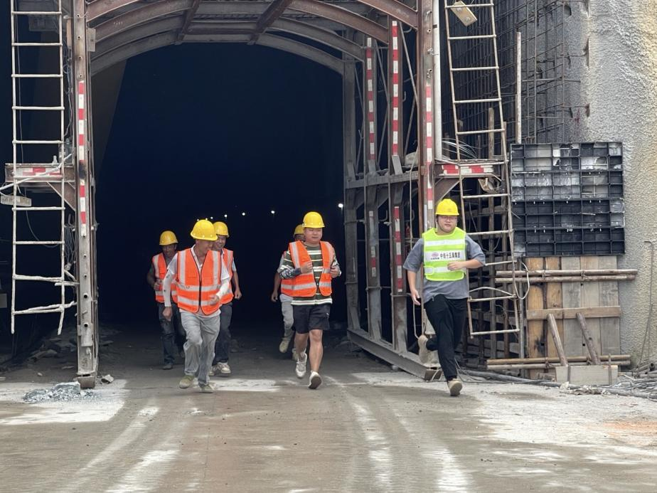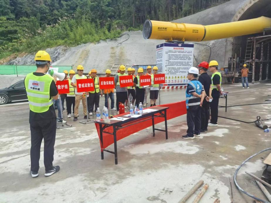 随着警报声响起,演练正式拉开帷幕。模拟场景中,隧道内突发大规模涌水,施工人员发现水位急剧上升的同时,因涌水漫灌导致电气设备短路引发火灾,浓烟迅速弥漫作业区域,多名人员被困。现场安全员立即启动紧急报警装置,向应急指挥部报告“双灾险情”,指挥部随即启动综合应急预案,各小组闻令而动,展开救援。